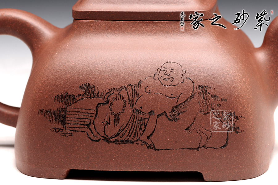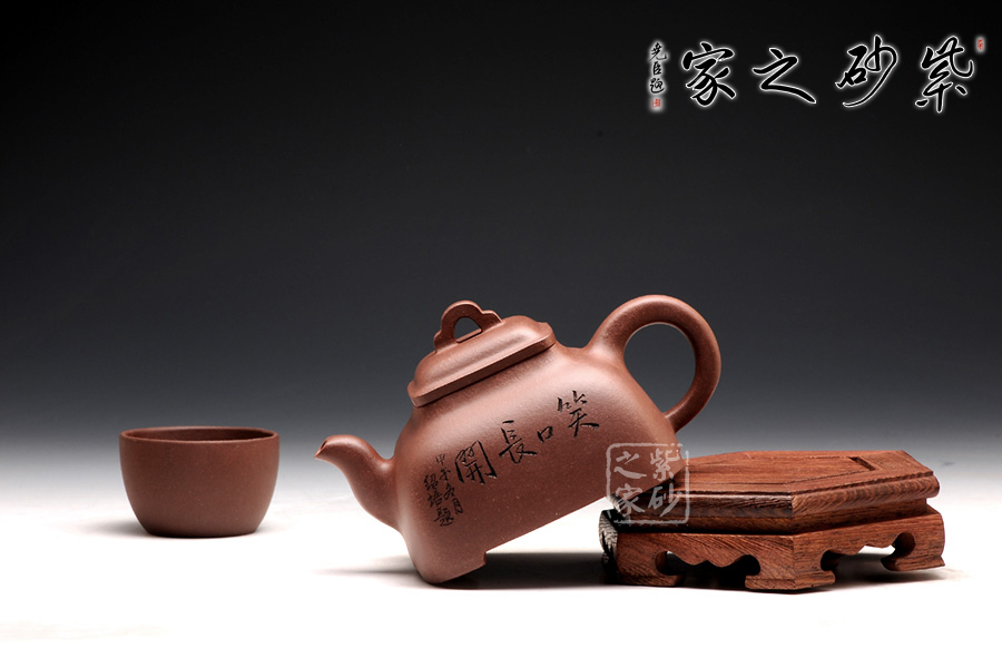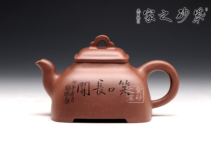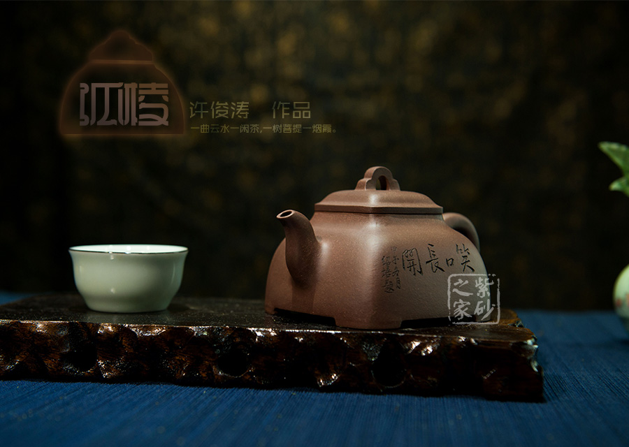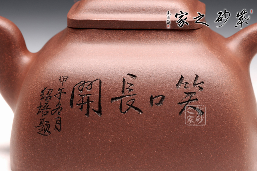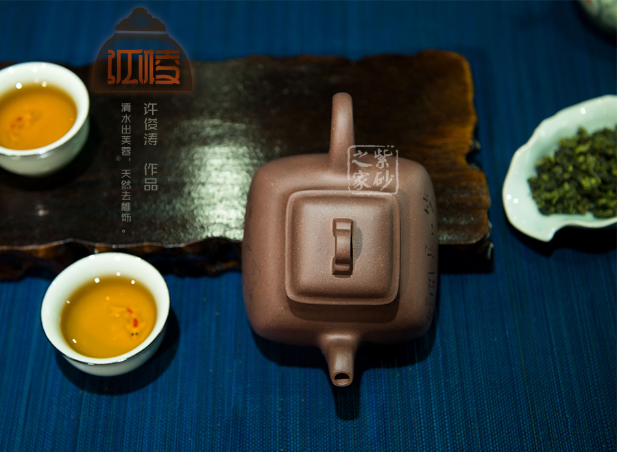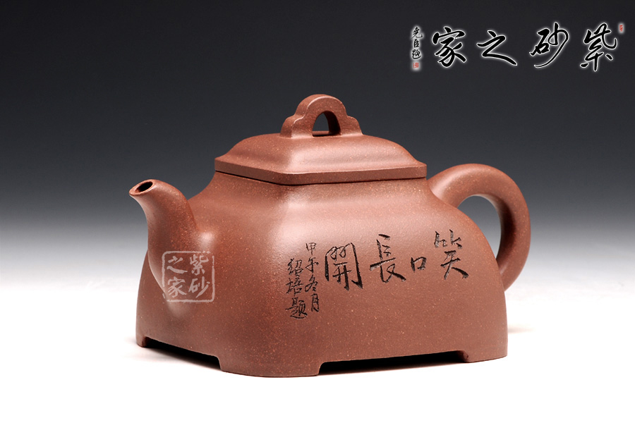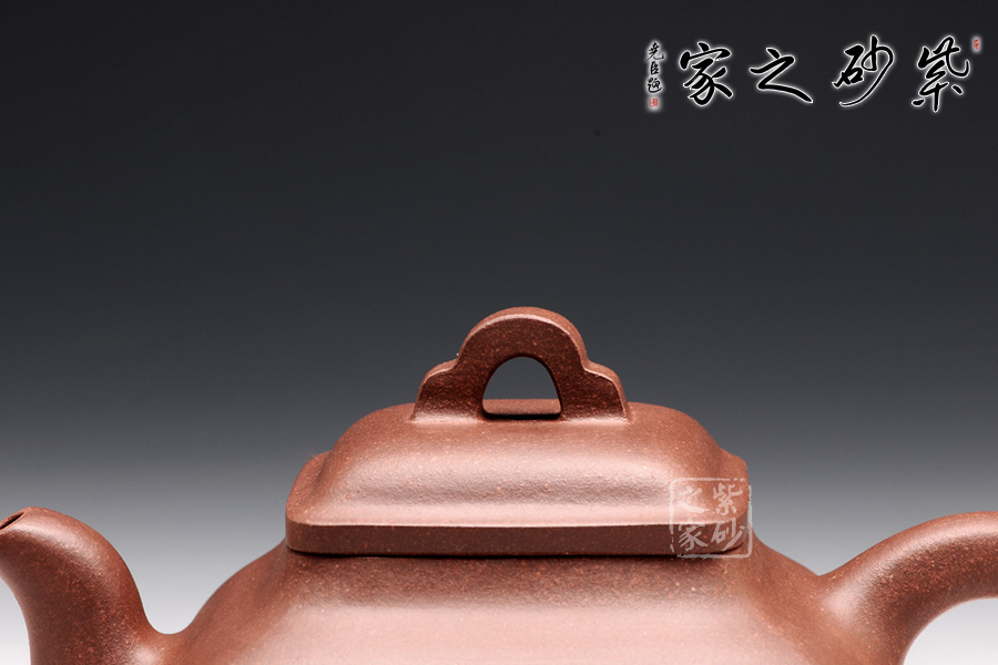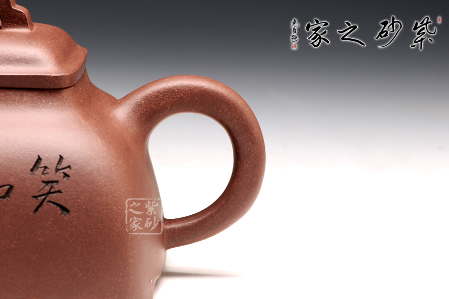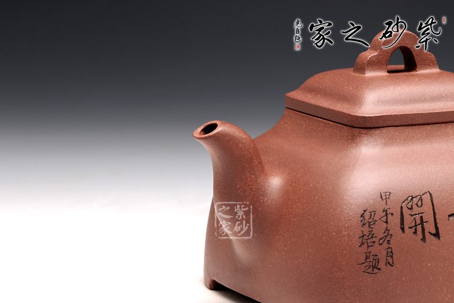 壺形底方肩渾,下寬上收,穩(wěn)重而雅致。至頸項與口沿交接處再度渾方。三角橋梁頂,簡潔大方。四方足托空壺體,呈虛空感,彎流順胥,把耳孔與壺身協(xié)調(diào)一致。線面流暢,菱角清晰而圓渾,適宜把玩。內(nèi)外處理干凈利索,精工細(xì)作,嚴(yán)謹(jǐn)而不失古韻。