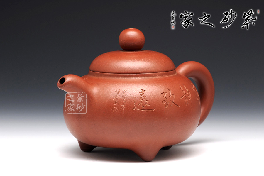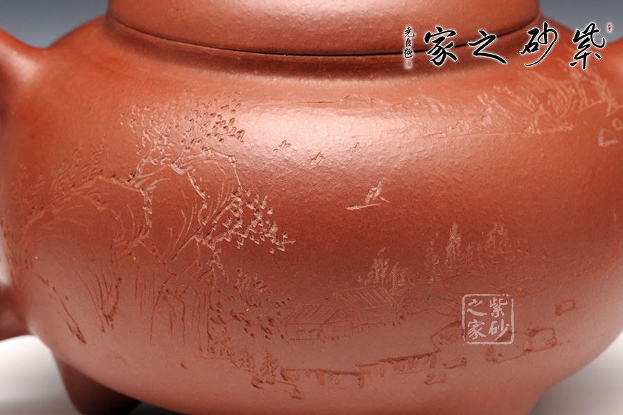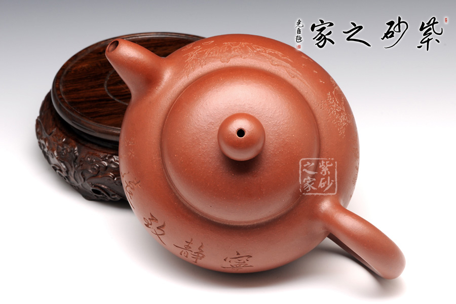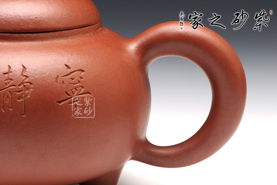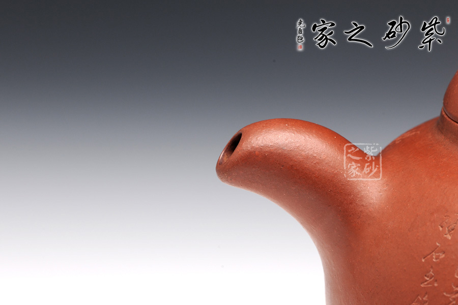 此壺飽滿圓潤,做工精湛,壺身造型十分經(jīng)典古雅,同時增添了動感,飽滿的壺嘴與壺把同壺身呼應(yīng),整體協(xié)調(diào)統(tǒng) 一;壺身圓潤飽滿,上斂下豐,如花苞之形,加底簡約與壺身暗接溫婉,壺口微斂,壓蓋纖柔,蓋面飽滿,壺鈕扁圓,壺嘴昂揚向上,嘴口圓潤,出水流暢,暗接端把如新月之形,緊貼壺身,扣握舒適。