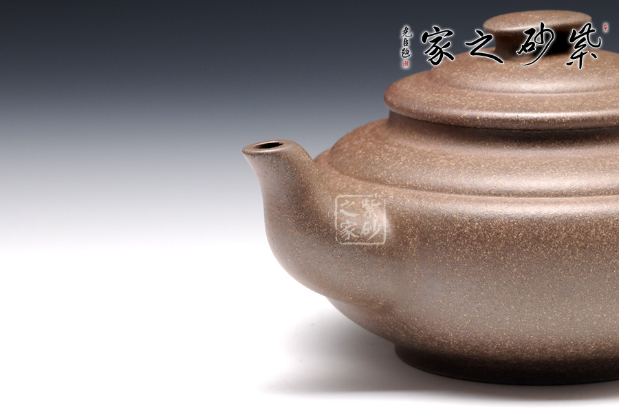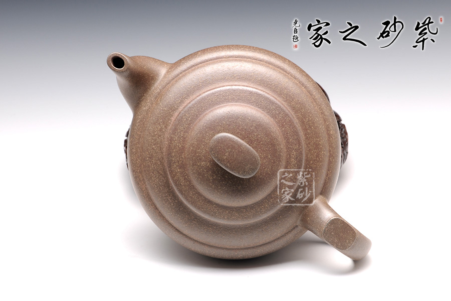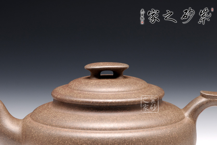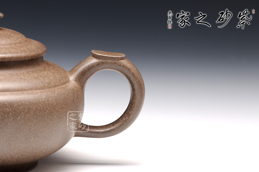 上新橋壺為六十年代顧景舟先生制作而成,為一代經(jīng)典之作; 這款上新橋,壺身呈扁圓形,折肩圈足,曲流環(huán)狀柄,壓蓋式,橋型鈕;此壺造型端莊、秀美、新穎脫俗,在柄的環(huán)狀之上稍加改動(dòng)即可安放拇指,又與壺蓋鈕相呼應(yīng),可謂匠心獨(dú)運(yùn)、設(shè)計(jì)巧妙;蓋與肩部均以凹線、階狀分割空間,自上而下視之,有一環(huán)扣一環(huán)水波蕩漾之感;壺蓋上的鈕正像一座小橋矗立于湖水之中,上新橋壺或由此而得名。