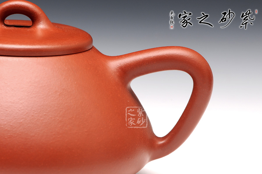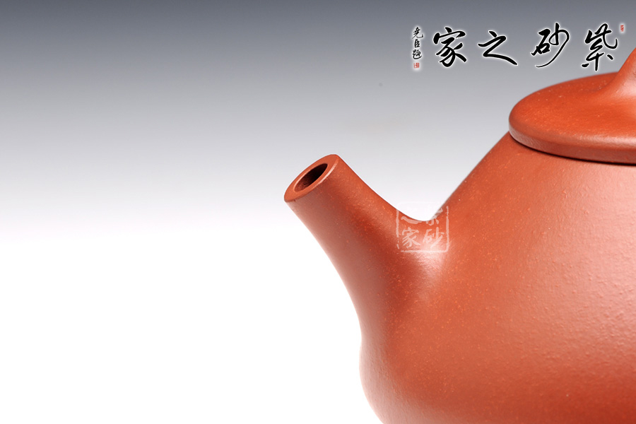 特點:質(zhì)感綿密、緊實細(xì)緻,持之扎實沉重、紅潤豔麗,泥中極品,無以倫比;泥胚含少許原礦顆粒,沖淋熱水后色變極大,呈紅中帶紫,養(yǎng)壺易現(xiàn)“包漿”之美。