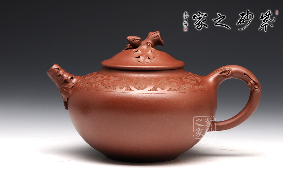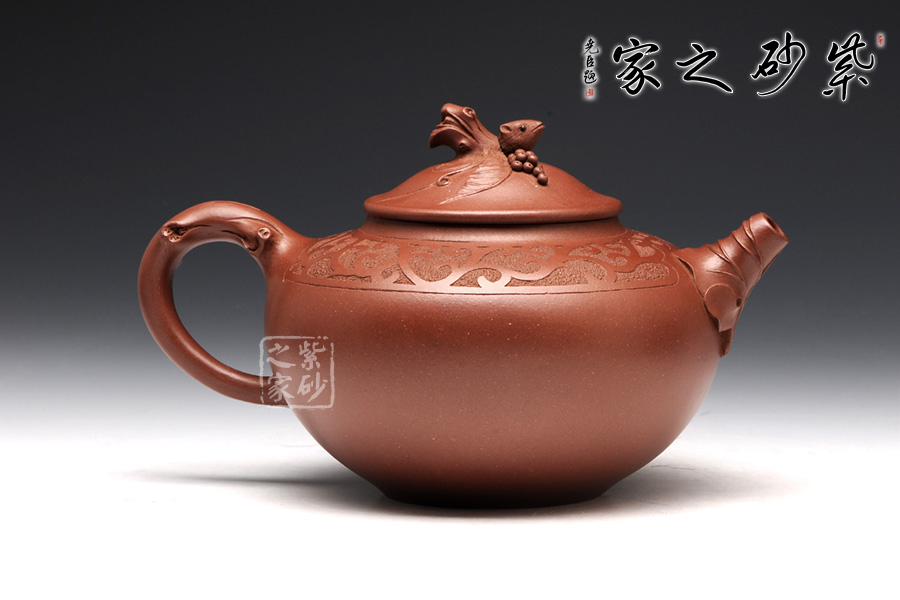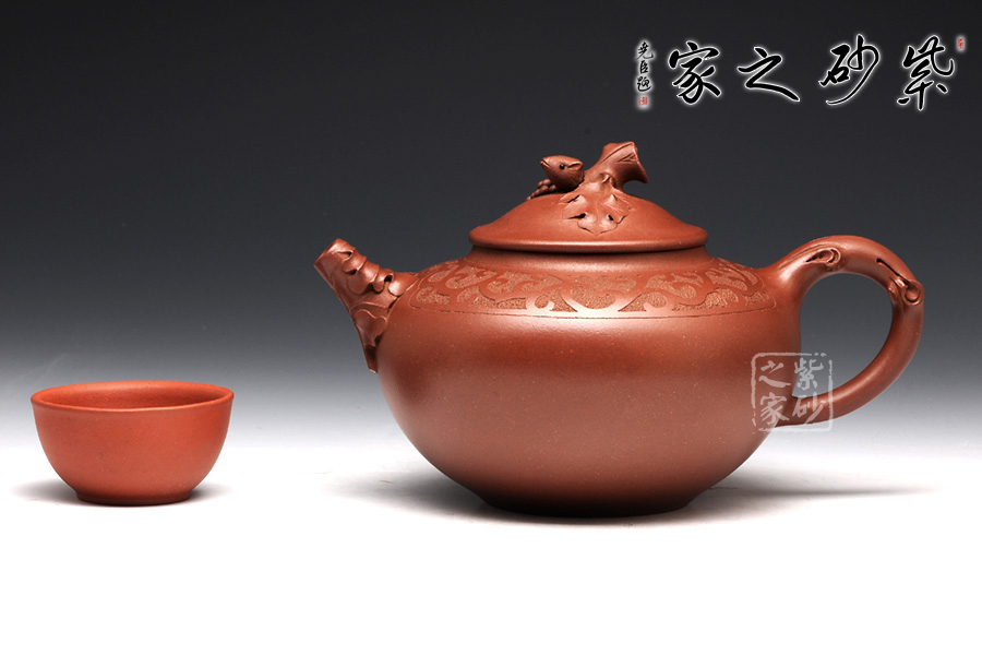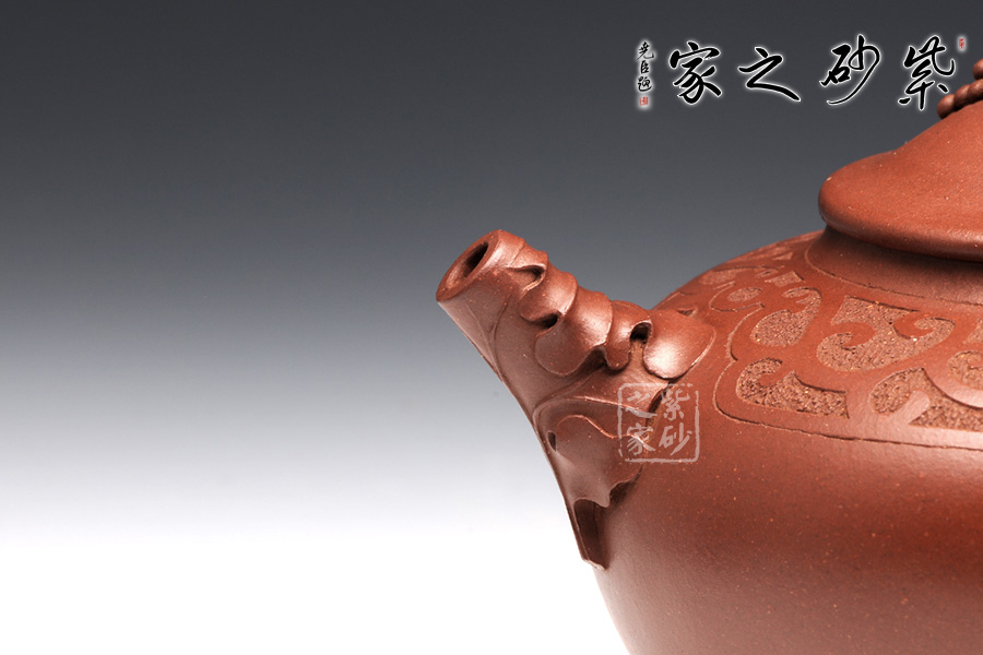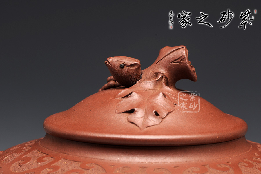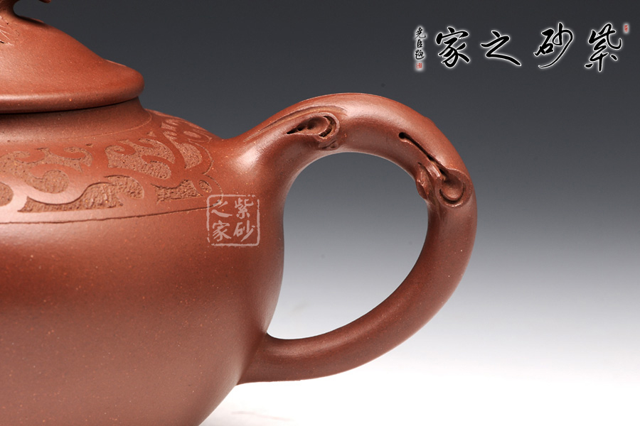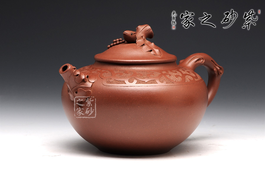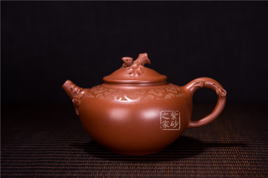 張紅華,1944年生于江蘇省宜興市丁蜀陶業(yè)世家,現(xiàn)為研究員級高級工藝美術(shù)師、江蘇省工藝美術(shù)大師、江蘇省陶瓷藝術(shù)大師、江蘇省工藝美術(shù)名人,七十年代初,正式拜當(dāng)代壺藝泰斗顧景舟為師;這款松趣壺是張紅華老師的經(jīng)典代表作之一,壺型經(jīng)典,豐碩瑩潤之感揮之不去,以陰陽篆刻花草藤蔓披于壺肩,松段為把、鈕,卷葉包壺嘴,一只靈巧的松鼠在壺鈕旁邊膽怯地張望,栩栩如生,韻道十足。