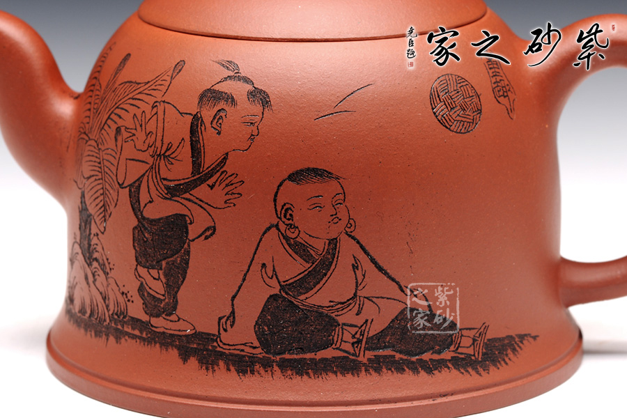 壺身的刻繪諧趣動(dòng)人,小童嬉戲讓人仿佛回到了幼年時(shí)光,而“清新雅韻”四個(gè)字大氣美觀。