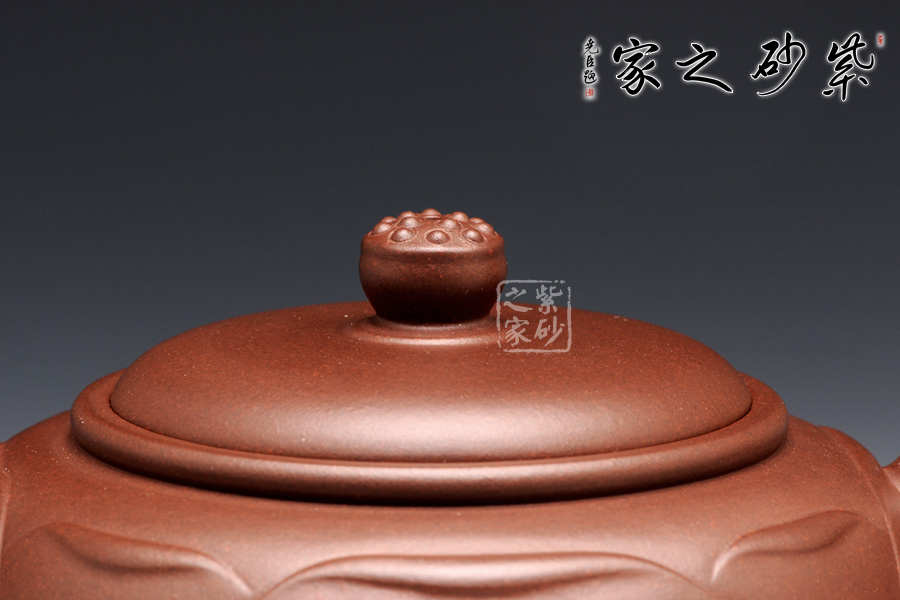 壺型制作非常用心,飽滿的輪廓配合荷花裝飾,花瓣精美,壺身圓潤(rùn),正給人以清新美妙的感受。三彎流壺嘴自成一體,獨(dú)立于壺身之外,蓮藕的造型似有若無(wú)。環(huán)形壺把圓中有方,線條爽利勁道,同樣是蓮藕外觀,更顯精致。壺蓋上的蓮蓬鈕尤其獨(dú)特,蓮子似要噴出,更加小巧可愛(ài)。