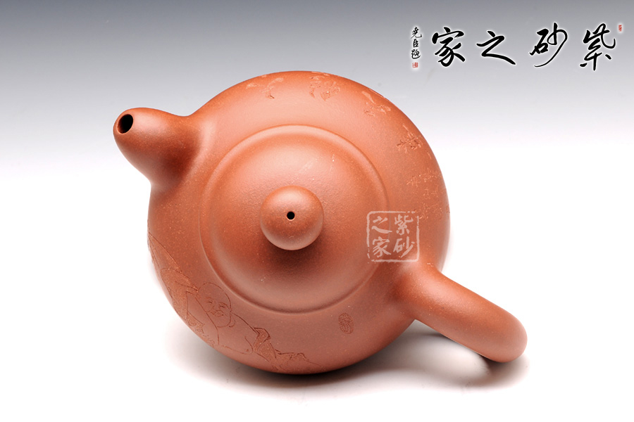 容天壺由大師呂堯臣首創(chuàng),靈感來(lái)源于大肚壺,此款容天壺飽滿(mǎn)富有張力,造型圓潤(rùn)可愛(ài),在氣韻飽滿(mǎn)的壺身上添加一微微矮頸,壺蓋增高成半球狀,平添拙樸童趣。出水效果極佳,用起來(lái)確實(shí)方便舒適。視覺(jué)上穩(wěn)重大度,在質(zhì)樸中見(jiàn)深厚。作品表達(dá)了為人需寬宏大量之意,意韻無(wú)窮!