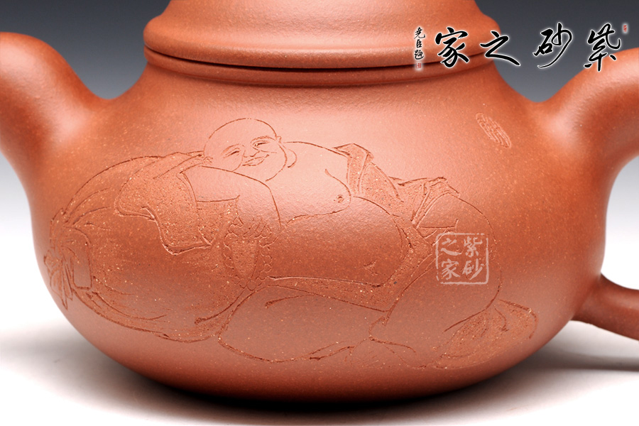 B面: 裝飾: 人物 裝飾者:陶刻藝人 裝飾內(nèi)容: 彌勒大肚佛,貼合寓意,大肚融融
