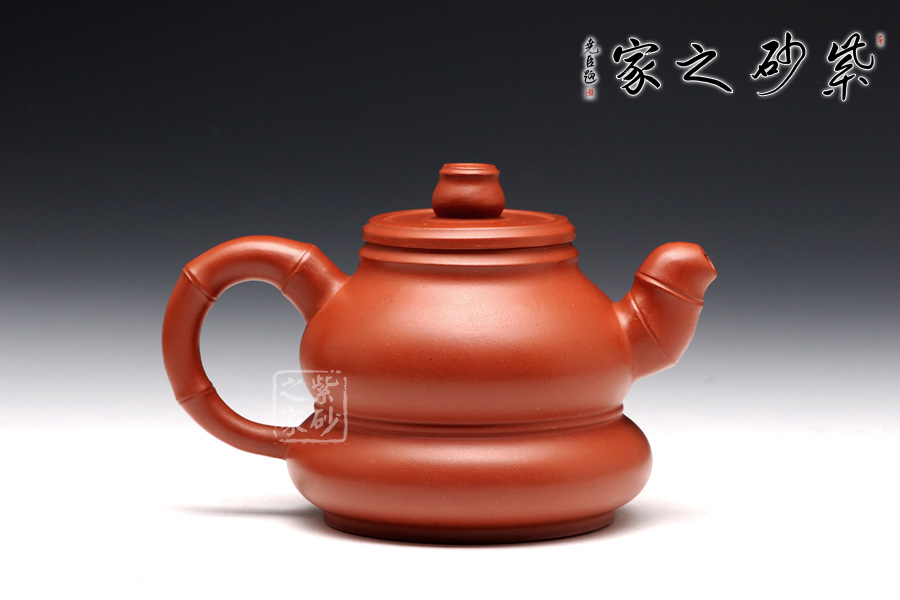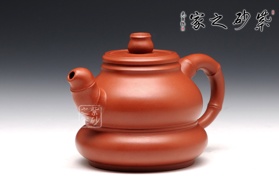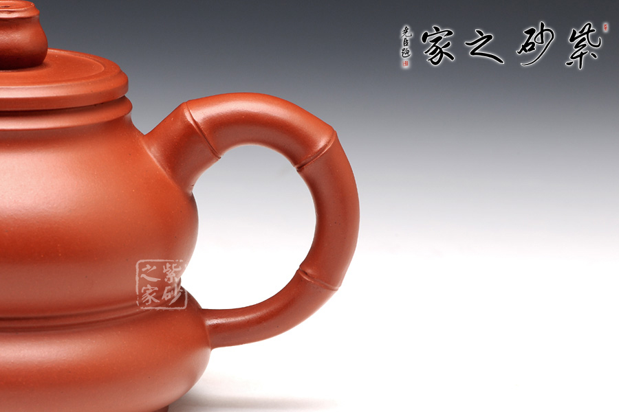 此壺造型非常獨(dú)特,整體以“竹”為主題,寓意“祝賀”,而身形似葫蘆,兩者融合,寓意“祝福”,作者巧妙的結(jié)合了竹子與葫蘆的特點(diǎn),此壺大腹圓潤(rùn)似鼓,線條流暢,壺鈕、壺嘴和壺把都似竹,雕刻生動(dòng)形象,讓主題體現(xiàn)得淋漓精致,朱泥所做,不可多得,把紫砂壺的細(xì)膩溫婉、大氣深沉都體現(xiàn)在了一把壺上,巧思不斷,值得收藏。