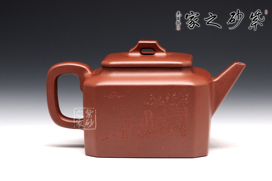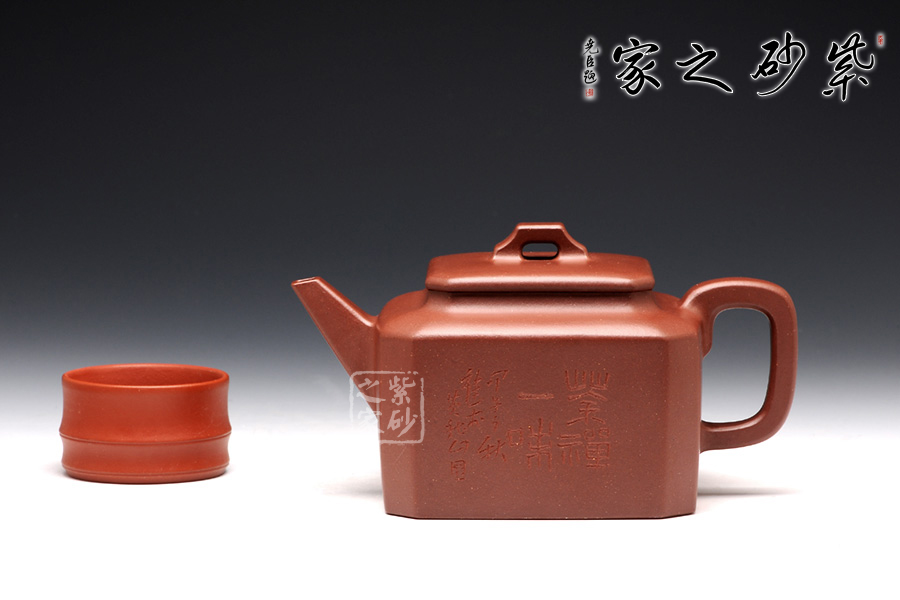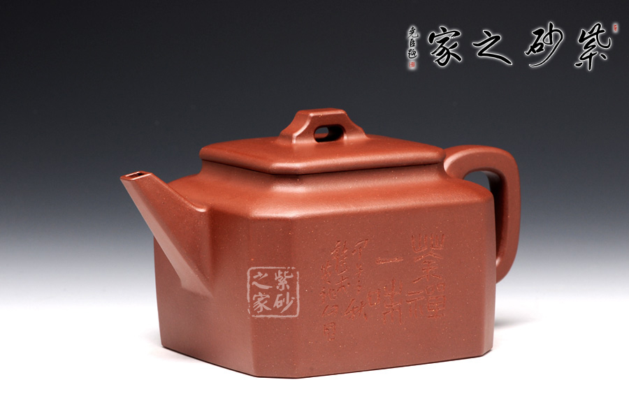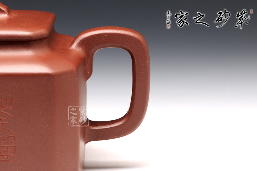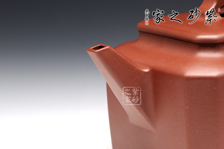 此壺名為八方,顧名思義,八方吉祥之意。此壺的吉祥和祝福之意,可見一斑。該壺造型奇特,壺身八方,對稱工整,足見制壺者工藝之精巧。壺鈕為橋型壺鈕,精巧別致。直流壺嘴上仰天長嘯,棱角清晰,線條剛勁有力,和壺身棱角線條和諧一致。端把大方端莊,圓中帶方,呈大耳之形,端握有力稱手,更與壺身相應(yīng)成趣。此壺,值得推薦。