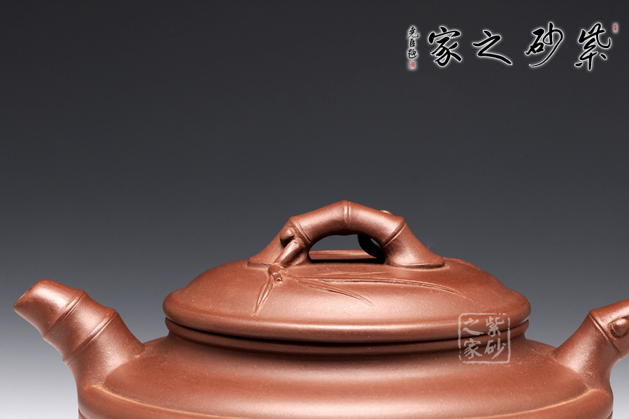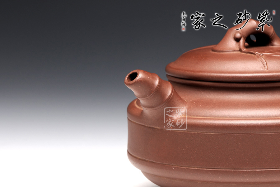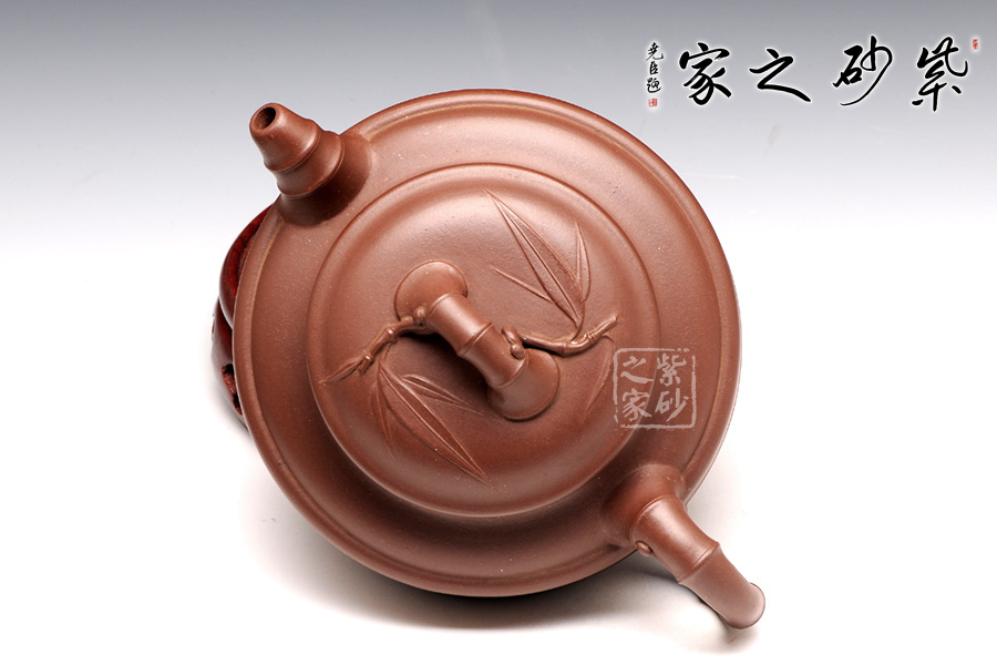 以竹為主題的壺不少,但每把壺都各有千秋,此壺壺身分為三節(jié),上下凸出,中間為平面,壺嘴和壺把也都似竹形,仿佛挺立風(fēng)中,讓我們感受到了高風(fēng)亮節(jié)之氣,壺蓋上的竹葉貼花線條簡潔,自然生動,而更巧妙的是以竹為鈕,作成橋形,古韻古香,整體和諧統(tǒng)一,泥料光潔細(xì)膩,值得收藏。