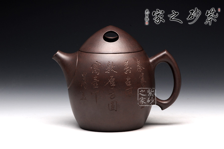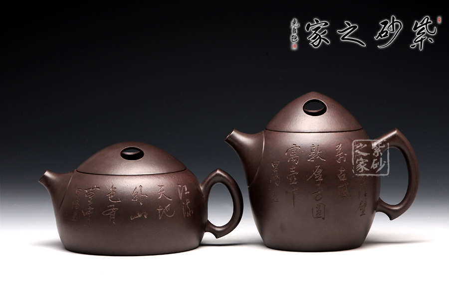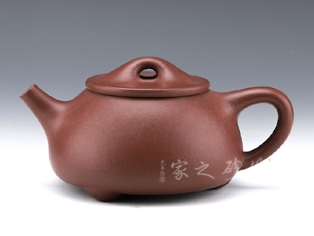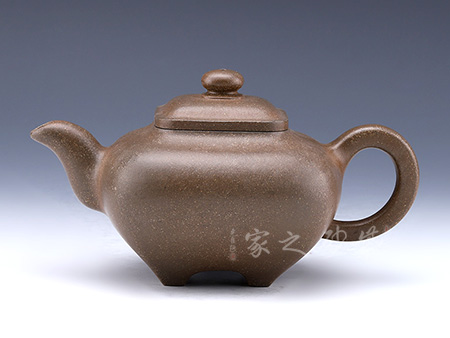 此款壺兩者有異曲同工之處,分為矮款與高款。壺身寬口,肩部收斂成口,外包口沿,短嘴,一彎流,出水流暢,壺柄特殊似菱形。壺蓋做的很精致,嵌蓋,與壺口緊密結(jié)合,和壺身宛如一體。壺鈕制作別出心裁,采用了牛鼻孔式的鏤空結(jié)構(gòu),生動(dòng)與趣味完美結(jié)合,壺身大而寬敞,線條,棱角,塊面顯得明朗,挺括,滋潤(rùn),比例恰到好處;整體造型自然,莊重,與現(xiàn)代壺藝中增添了一些傳統(tǒng)壺藝的韻味。