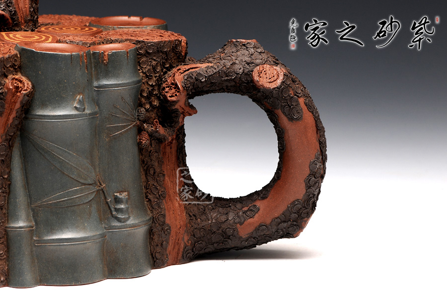 壺把為梅樁,壺身竹段共融,壺嘴為松枝;松皮質(zhì)、松針、松果的滄桑老道,梅枝的高雅精致,竹段質(zhì)樸清幽,無一不表現(xiàn)得淋漓盡致,壺身三友相互融合,以最樸實的形態(tài)展現(xiàn)最高潔的精神,壺中上品,不收藏就可惜了!