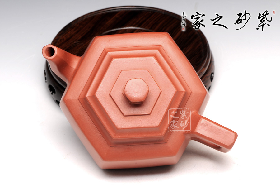 雪華壺意為瑞雪兆豐年之意,寓意美好,此款小雪華壺將經(jīng)典再現(xiàn),小品方器盡顯玲瓏之態(tài),蓋面重疊六方形,六方蓋鈕與壺身相似,壺腹下內(nèi)收,六方加底,整體造型,折肩以上刻劃較細,俯視可看出六個方形層層疊加,壺身較為簡單,可形成對比;嘴、鈕與把三點一線,嘴型呈六方,又彎曲有度,三彎古拙韻高;把呈四方,轉(zhuǎn)折有力度,端握舒適稱手;壺鈕呈六方蓮子形狀,吉祥如意;整個壺型輕薄飽滿,做工細致,方雅而不失靈氣,不禁讓人想起漫天飛舞的輕盈雪華,美麗動人。