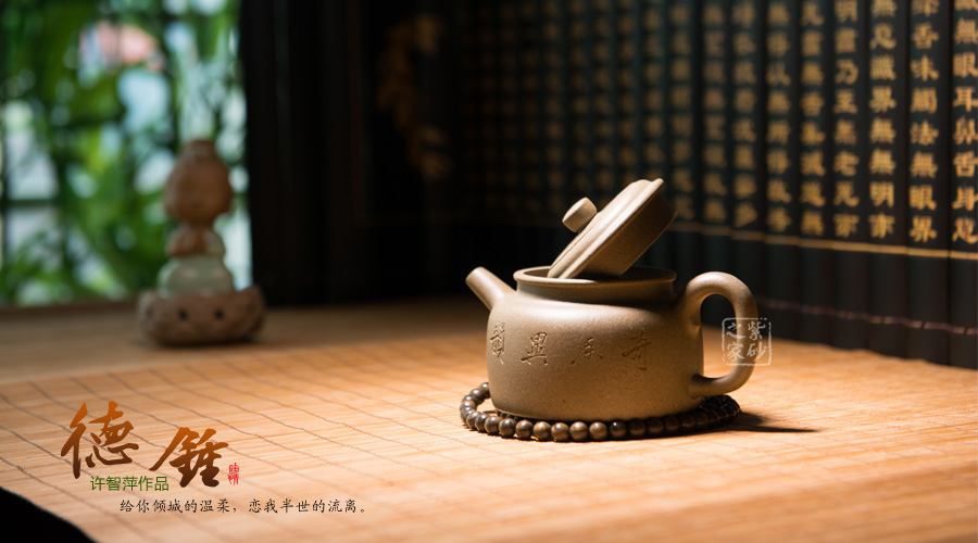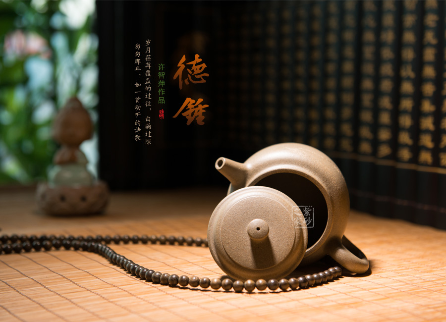 德鐘是紫砂光素器中的經(jīng)典器型之一,隨著人們審美觀念的提升,開始采用刻繪的手法提升作品的可觀賞性,此款作品器形端莊穩(wěn)重,比例協(xié)調,結構嚴謹,其技藝手法的表現(xiàn)已達到一種技術的巔峰。造型簡潔質樸,令人沉醉在其典雅的氣韻之中慢慢回味!