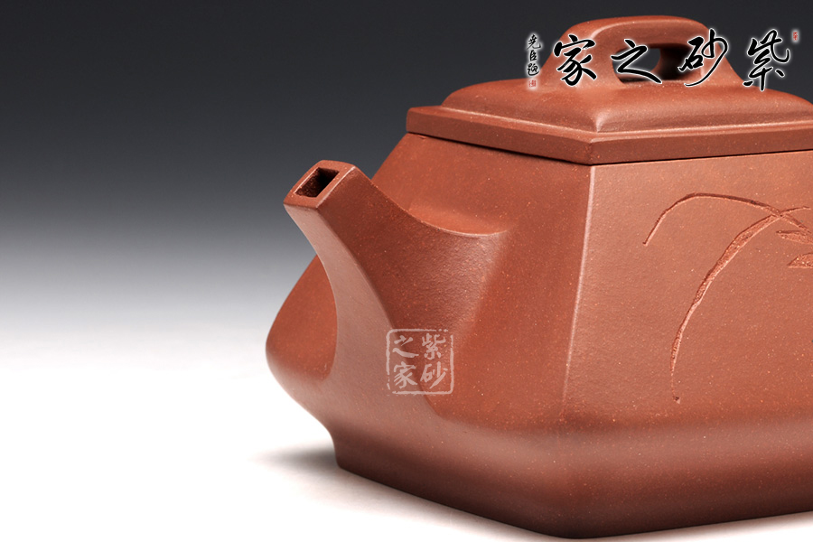 此壺的造型與盧寧剛老師的抽角石瓢的壺型十分相似,不同的地方就在于此壺并沒有抽角的設(shè)計(jì),而是正統(tǒng)的四方設(shè)計(jì),壺身的棱角自上而下,棱角分明,壺身呈金字塔狀,凝重大方,壺底向內(nèi)收斂,以圓角過渡,協(xié)調(diào)中顯現(xiàn)質(zhì)樸,寬厚的壺身預(yù)示人的胸懷;四方壺蓋邊緣平整,蓋面飽滿上凸,橋形鈕暗接精湛;壺嘴與壺把皆延續(xù)了石瓢壺的風(fēng)格,直流嘴四方形迅猛有力,三角形端把剛中帶柔,端握舒適;壺?zé)o論在做工、口蓋處理以及泥料選擇都頗為用心,是品茗收藏的上等壺品!
