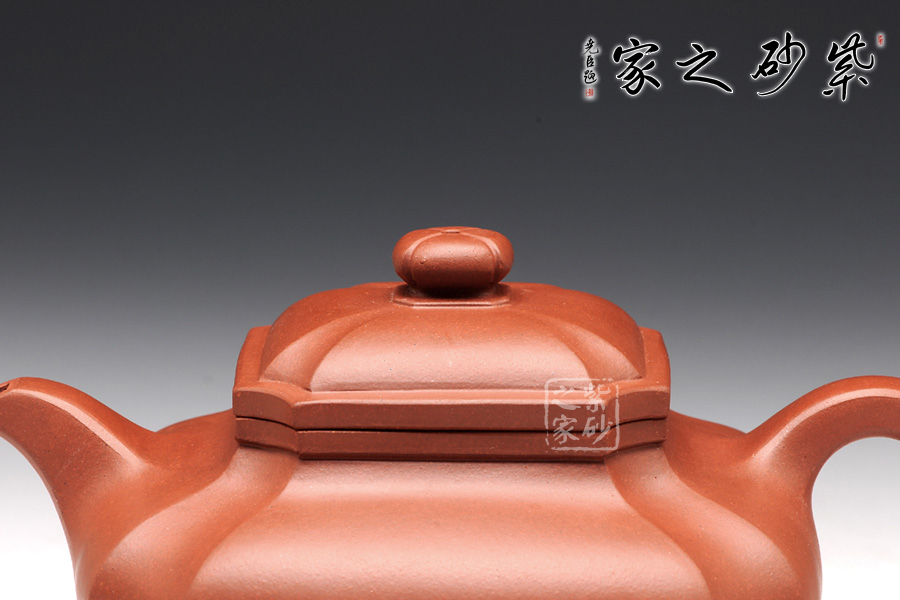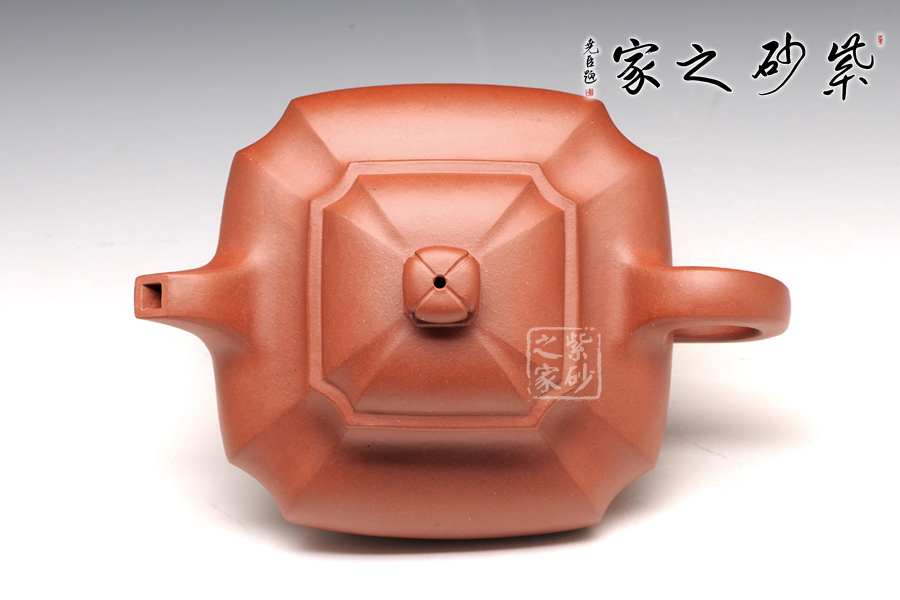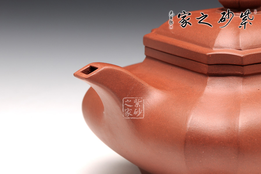 這款壺型又融入了抽角的元素,顯得更加細(xì)膩溫婉。此壺敦厚樸實(shí),寓圓于方,無論是壺嘴還是壺把都制作難度極大,可謂風(fēng)格雅致,隱隱爭有古風(fēng)韻,彎流曲折有致,出水流暢。壺蓋延續(xù)了全器造型特微,方型圓角,壓蓋形式,制作精良的壺蓋四面通轉(zhuǎn)無礙,且面面俱到,接續(xù)全壺氣韻。此壺實(shí)乃難得的佳作!