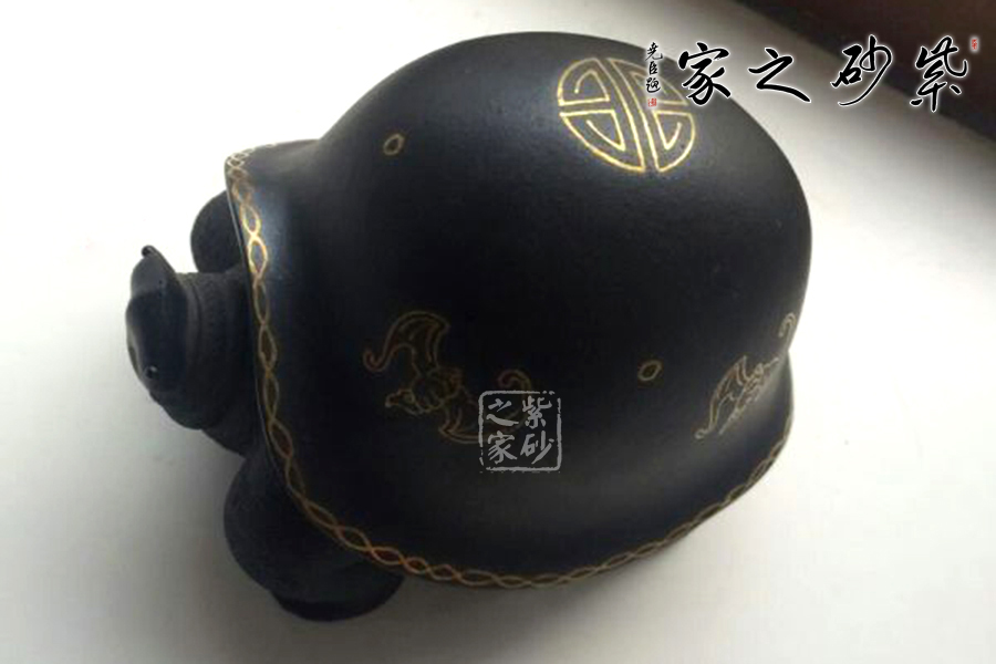 此物金龜造型精致而生動(dòng),龜背之上描金富貴大氣,加之描金刻繪蝙蝠,更添祝福,福上加喜,有“福壽雙全”之意。此物吉祥尊貴,又有美好之意,同時(shí)寓意財(cái)源滾滾,可謂意義非凡!