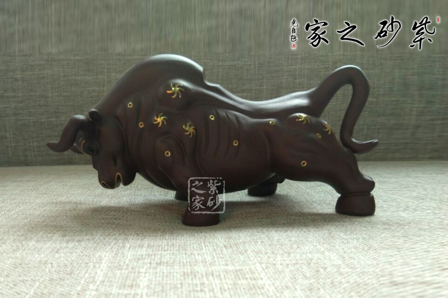 精選原礦紫泥制成的此斗牛,細(xì)膩柔和,古雅厚重。細(xì)觀此牛,眉目傳神,毛色自然,生動(dòng)逼真,足見制作工藝之精湛。此外,斗牛不僅展現(xiàn)了一種力度之美,同時(shí)更是健碩的象征,更有精神充沛、力量雄厚的寄寓。此擺件,不論是贈(zèng)送親友還是自我珍藏,皆是珍品。