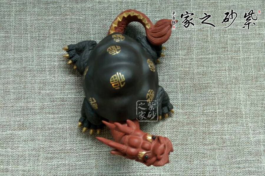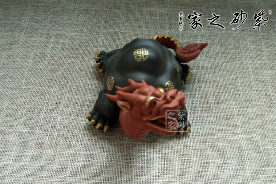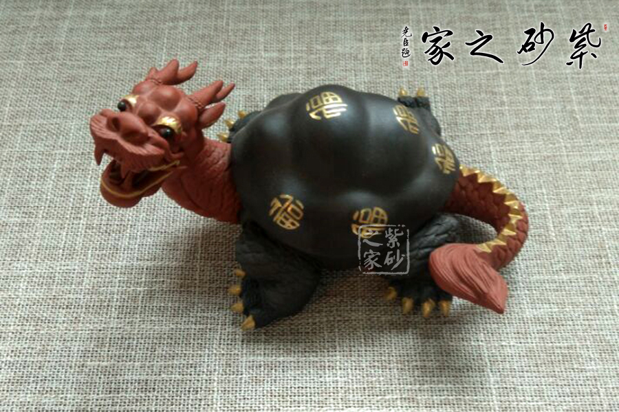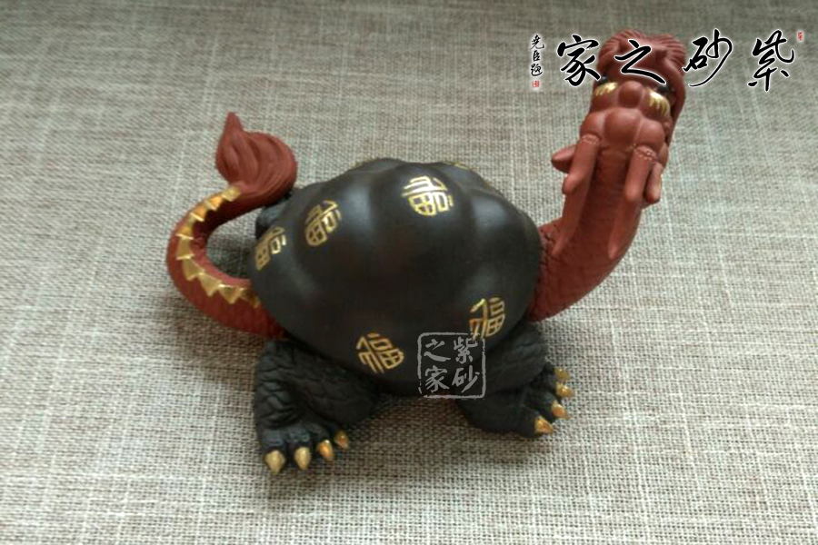 此描金龜造型精致而生動,將龍與龜十分完美的融合一體,龜背之上凸凹有致的龜殼制作逼真而精巧,相間的描金裝飾更顯尊貴,刻繪“福”字,典雅藝美。在傳統(tǒng)中龍是吉祥尊貴之意,而龜又是長壽的象征,送長輩、送領(lǐng)導(dǎo)可謂意義非凡,而用于把玩亦是樂趣悠長。
