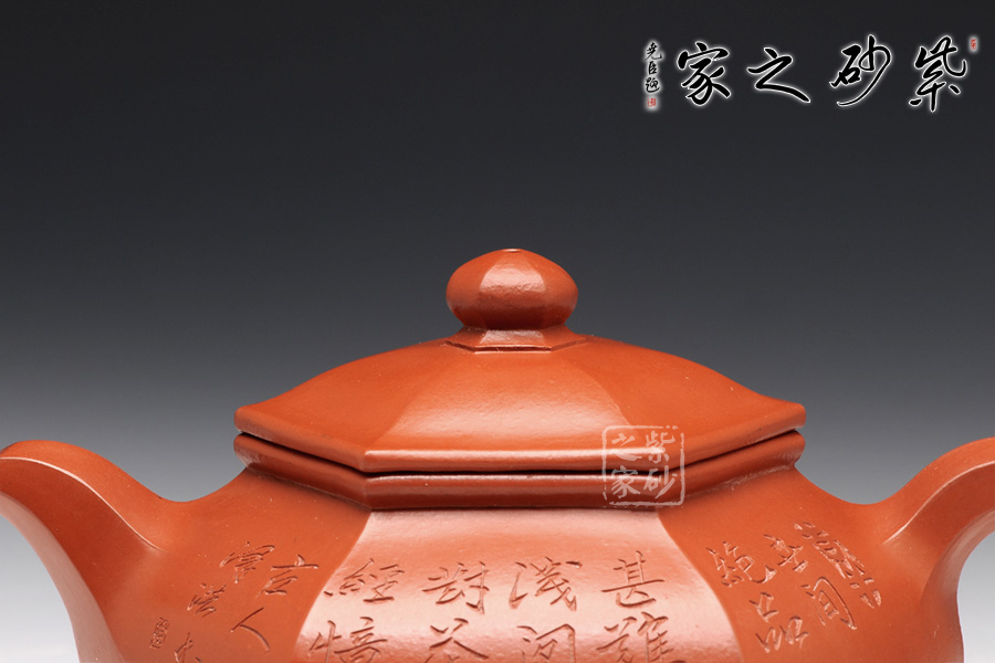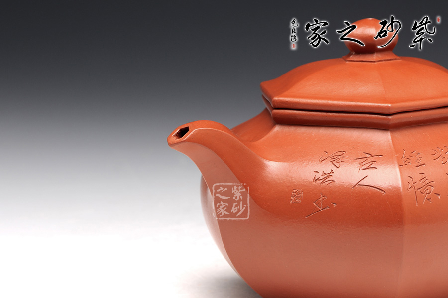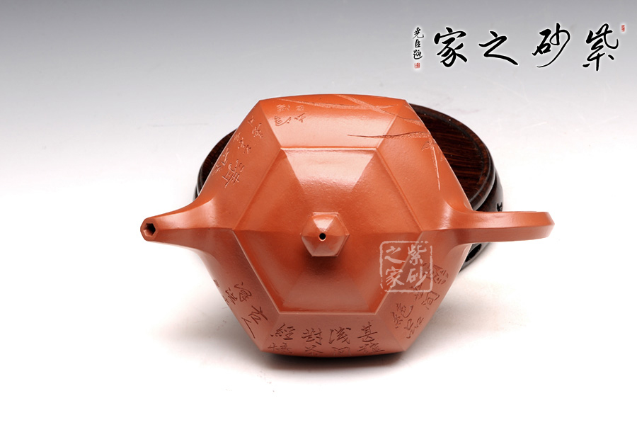 六方為經(jīng)典款式,為老師全手工制作而成,做工嚴(yán)謹(jǐn),且上手具佳。壺身呈六棱柱型,壺蓋與壺口相就對(duì)亦呈六方圓形,有對(duì)合半弧紋的小圓鈕,不規(guī)則六棱形彎流壺嘴以及五棱型壺把,壺的所有部位與壺形體相稱,整體線面挺括平整,有棱有角,給人明秀挺快,干凈利落的陽(yáng)剛之美,做到“方中寓圓,方中求變,口蓋劃一,剛?cè)嵯喾Q”。