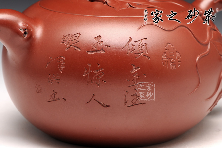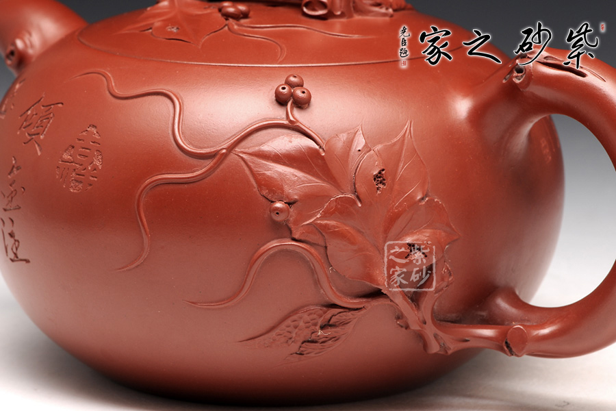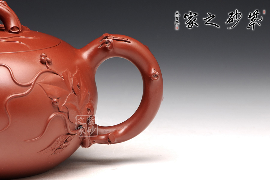 特點(diǎn):質(zhì)感綿密、緊實(shí)細(xì)緻,持之扎實(shí)沉重、紅潤豔麗,泥中極品,無以倫比;泥胚含少許原礦顆粒,沖淋熱水后色變極大,呈紅中帶紫,養(yǎng)壺易現(xiàn)“包漿”之美。