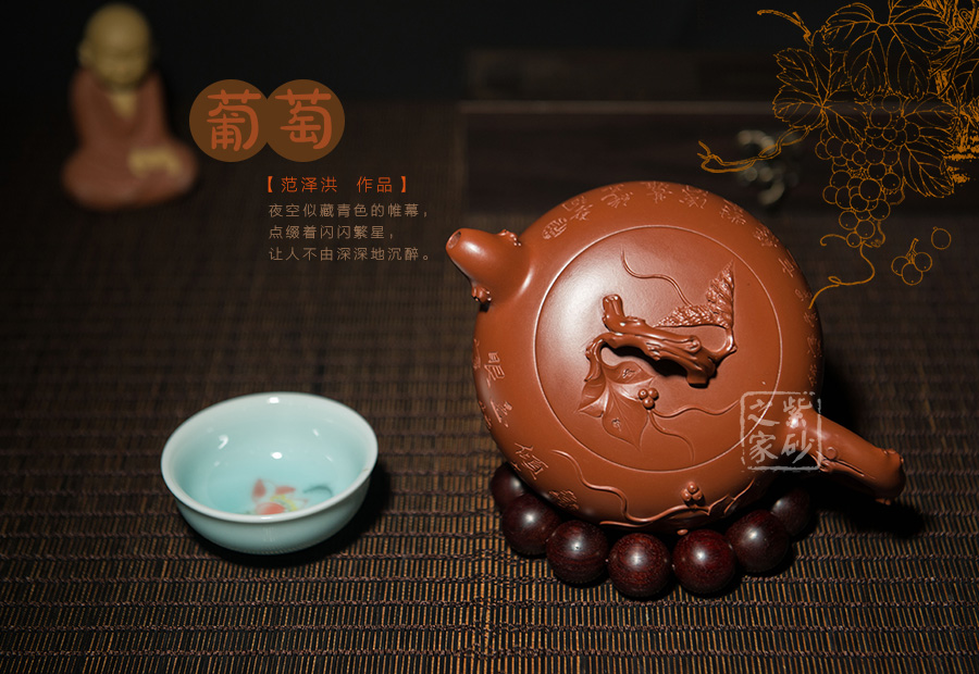 簡介:大紅袍紅豔奪目,氣質(zhì)高雅,令觀者滿受瑞氣臨身,鴻運(yùn)當(dāng)頭之意;為瀕臨絕滅之極品朱泥。