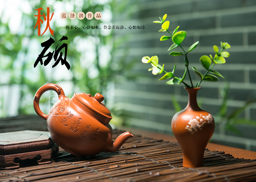 范澤洪推崇“實(shí)用”。他認(rèn)為不實(shí)用的花器充其量只是一個(gè)擺設(shè),只有把裝飾與實(shí)用結(jié)合起來(lái)才是一件好作品。范澤洪擅長(zhǎng)制作光素器,亦擅長(zhǎng)小花器。他的花器總是在要緊的位置做一些點(diǎn)綴,保留紫砂壺的實(shí)用特性。鐵筆刻繪之余,范澤洪常用類(lèi)似泥繪、融合雕刻的裝飾手法。