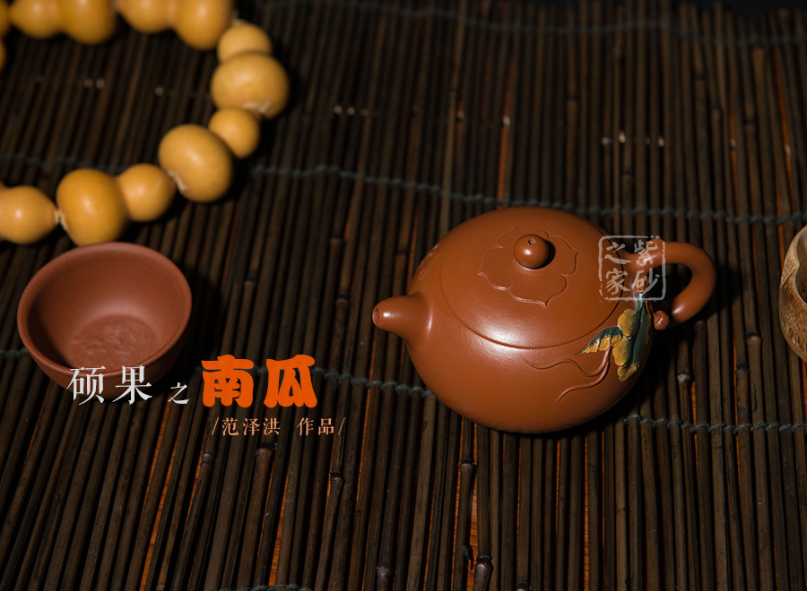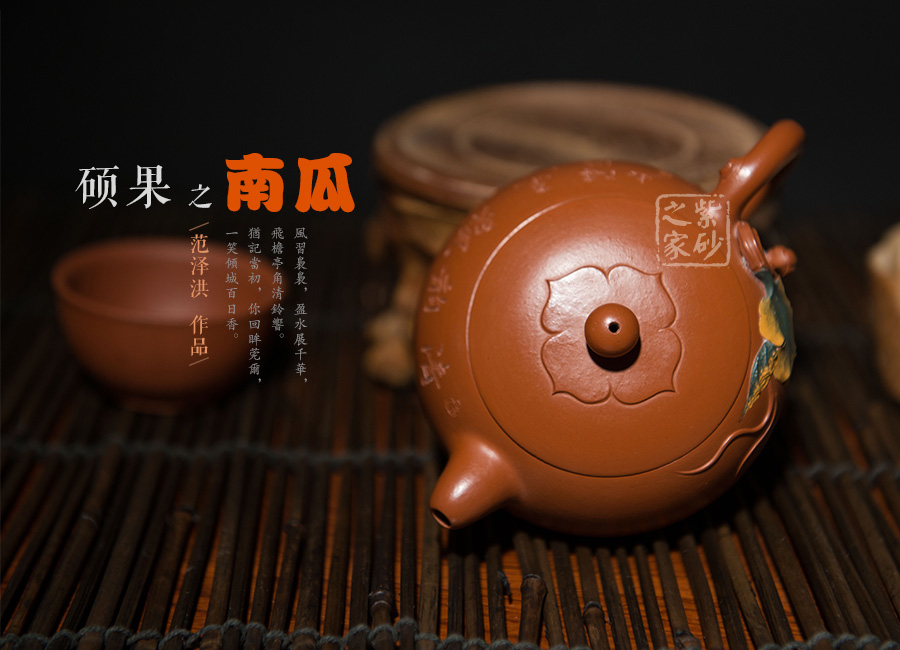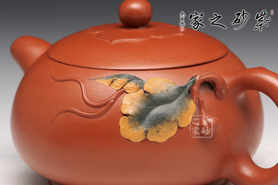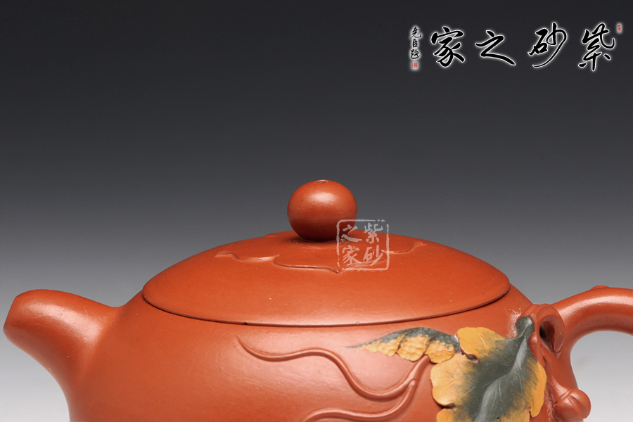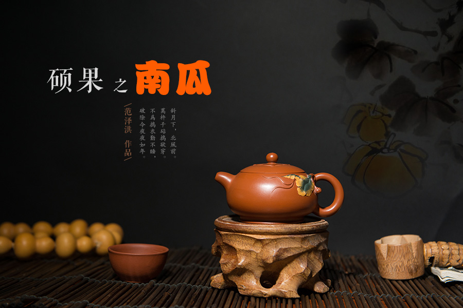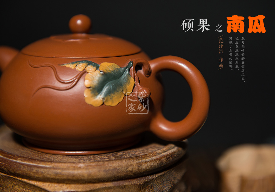 此壺碩果南瓜,手持自然和諧,泥料選用原礦朱泥制作,更加田園情趣。壺把之處的翠綠嫩葉的緩緩而出,接連壺身,給人一種自然之感,好似在瓜果田園之中,感受美妙。一手掌握的壺身,扁而圓潤(rùn),素雅而美,不同傳統(tǒng)的筋紋器南瓜壺,更加有一種返璞歸真,淡雅的感覺,怎叫人不愛呢!