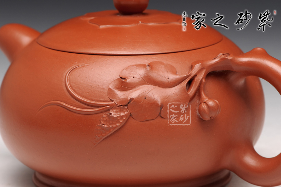 此壺碩果南瓜,手持自然和諧,泥料選用原礦朱泥制作,更加田園情趣。壺把之處的嫩葉的緩緩而出,接連壺身,給人一種自然之感,好似在瓜果田園之中,感受美妙。一手掌握的壺身,扁而圓潤,素雅而美,不同傳統(tǒng)的筋紋器南瓜壺,更加有一種返璞歸真,淡雅的感覺,怎叫人不愛呢!