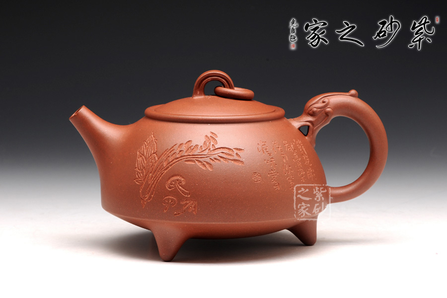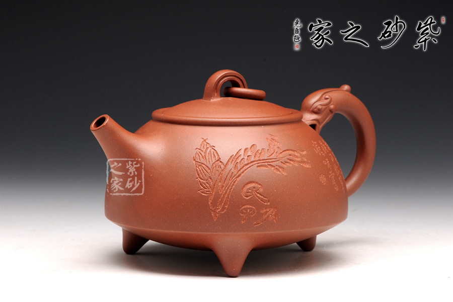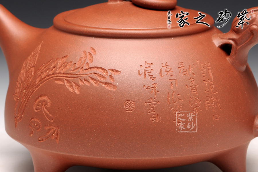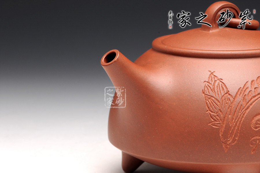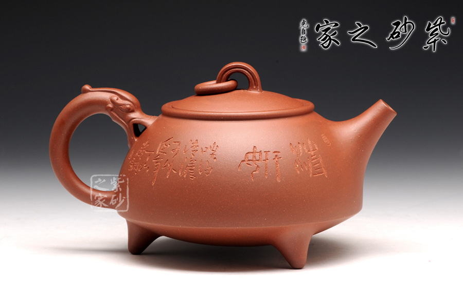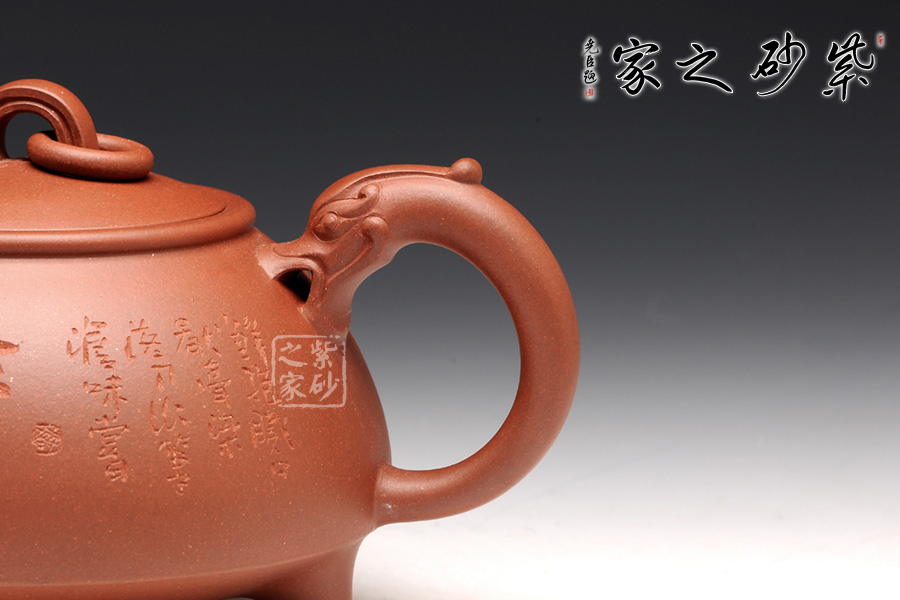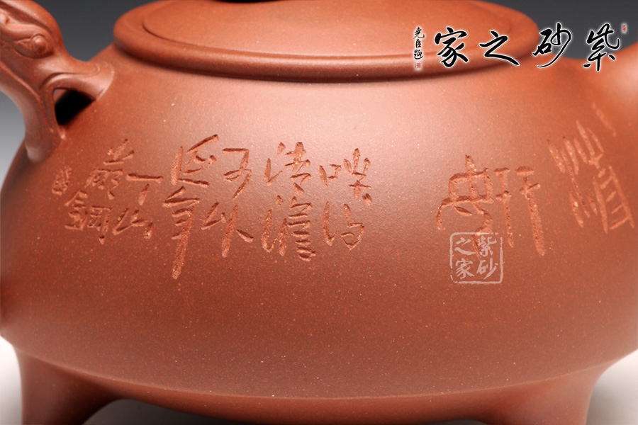 周桂珍老師有一款環(huán)龍三足堪稱經(jīng)典,而周忠興老師手工制作的此款環(huán)龍三足亦有其獨(dú)特的個(gè)性所在。造型如同一鼎,鼎一直是最常見和最神秘的禮器。鼎被視為傳國重器,國家和權(quán)力的象征。后來又寓意鼎盛發(fā)展之意,半圓鼎型,三足支撐穩(wěn)重有力,龍首張開,拔地而起。直流壺嘴直指蒼天,剛健有力,和諧有度。