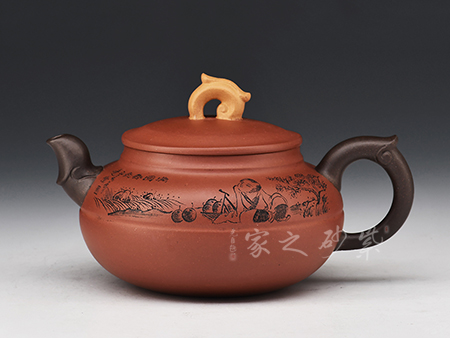 泥性:感甜嫩綿密,質(zhì)堅(jiān)而溫潤(rùn),呈近田黃色調(diào),為江蘇宜興趙莊山系朱泥礦~黃石黃之共生礦,經(jīng)挑揀練製而成,因含鐵量只達(dá)6%左右,致陶之后呈“金田黃色”。