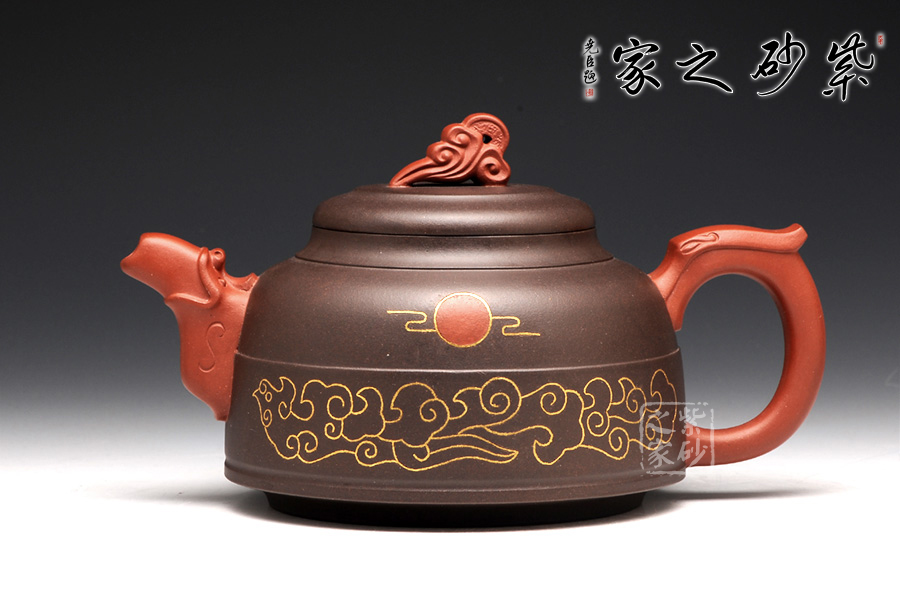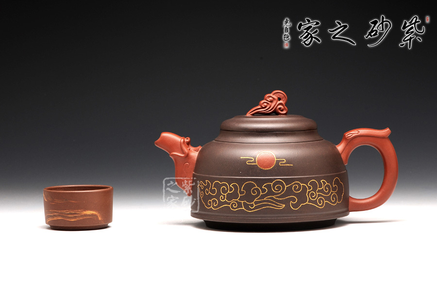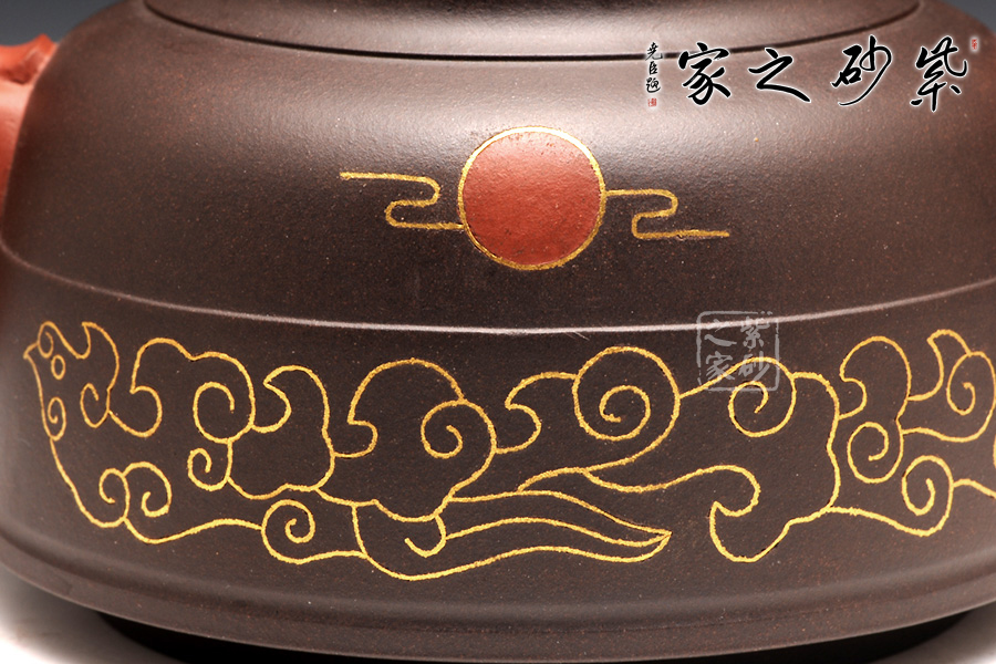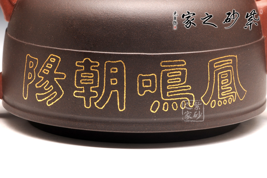 鑲金裝飾映襯在壺身上尤其亮眼,祥云紅日寓意蒸蒸日上,而“鳳鳴朝陽”四個字也華麗大氣。