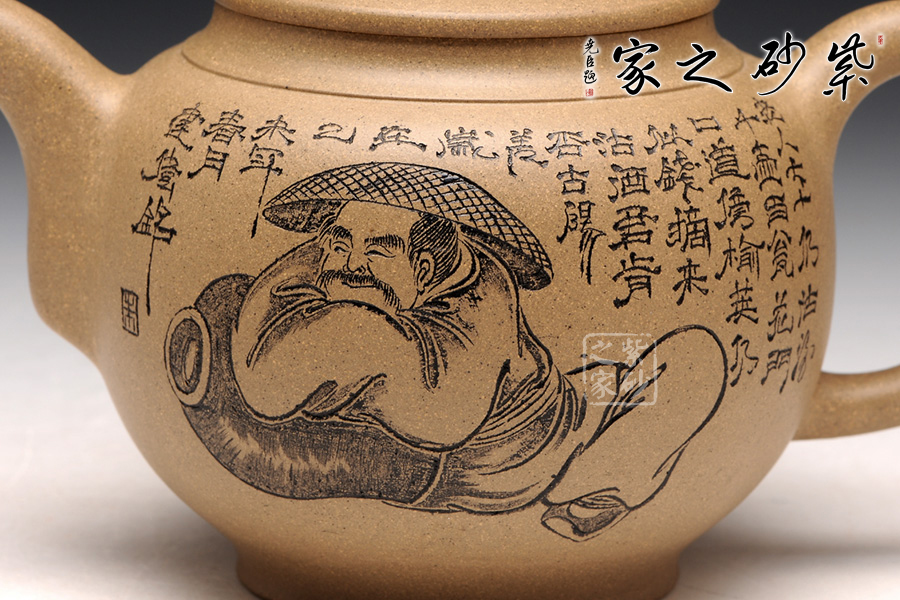 A面: 裝飾: 人物 裝飾者:朱建偉 裝飾內(nèi)容: 老翁斗笠俯臥,似抱酒壇,為樂常在