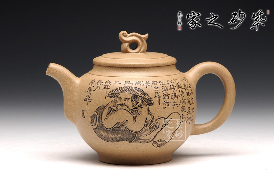 書畫與紫砂藝術(shù)的結(jié)合不但讓作品更具欣賞價(jià)值,同時(shí)增添作品的趣味性。此壺大肚圓融,以簡(jiǎn)練的線條構(gòu)造出厚重穩(wěn)實(shí)的作品,一眼看上增便覺心清氣爽。別致的彎流嘴、圈耳把、與壺身結(jié)合得是好么的自然。壺鈕似水浪,抽象異形,可謂造型別致??傮w使人把玩之余,情趣使然!