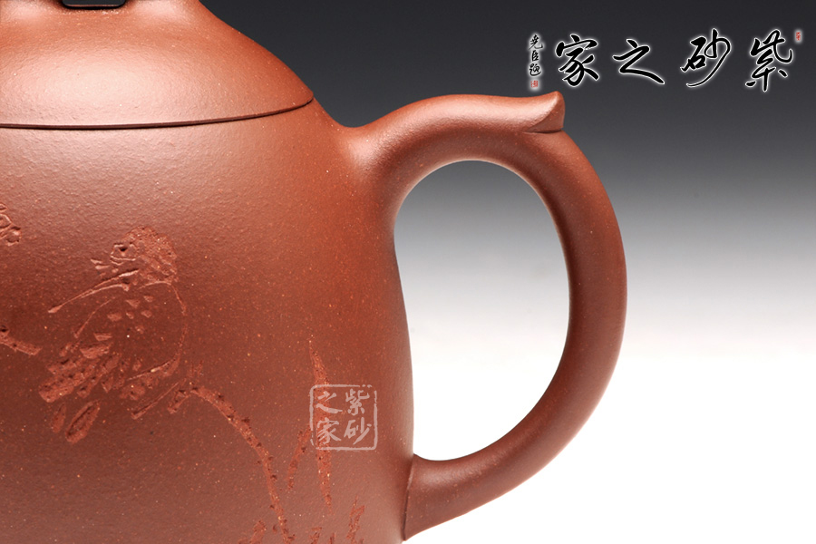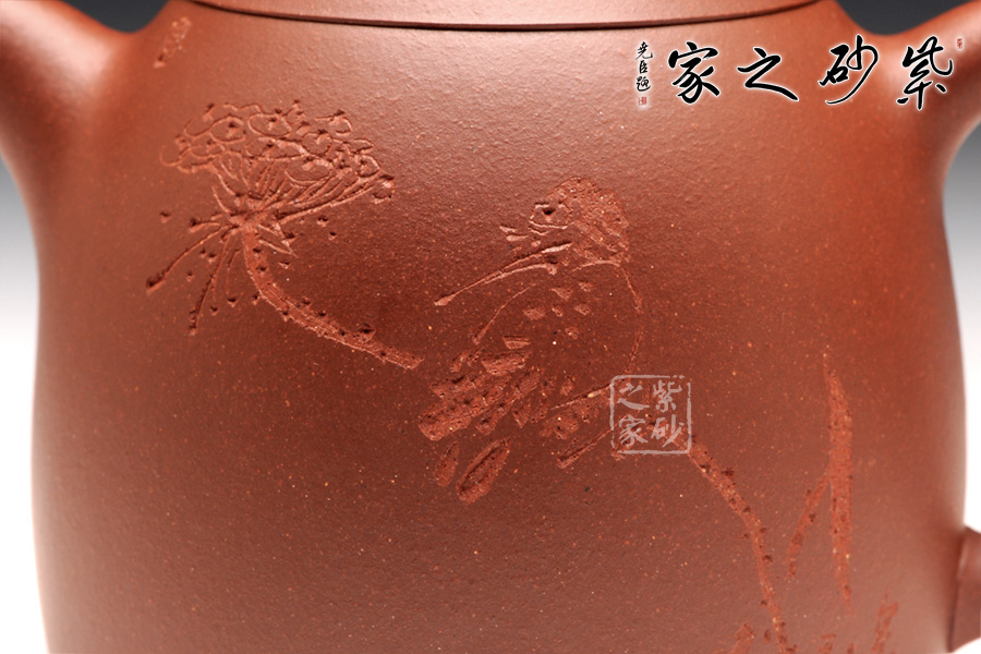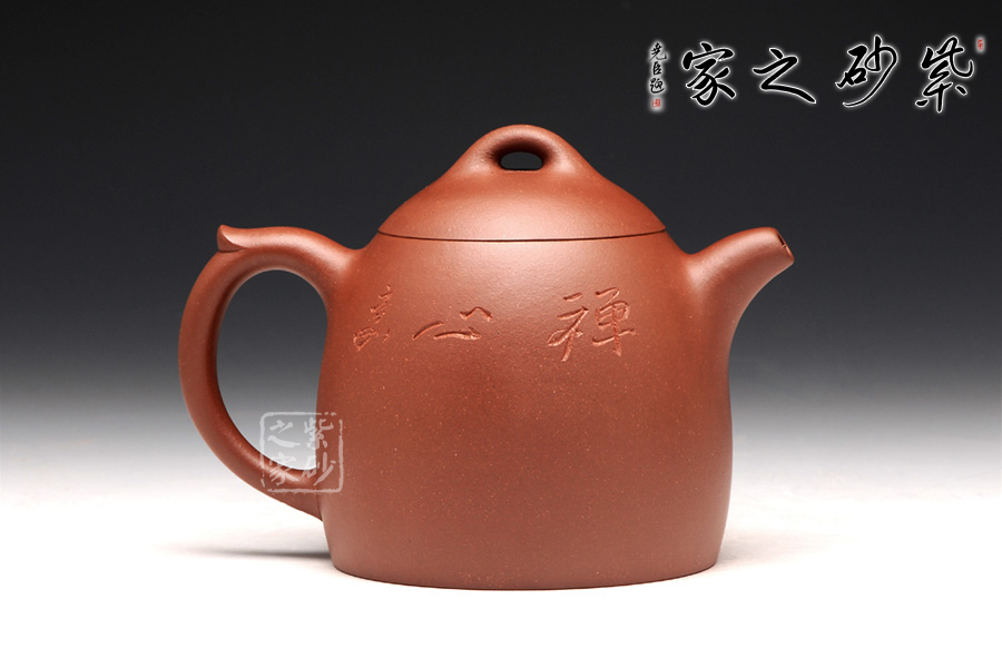 此壺整體造型古樸簡練又不失大方。壺身高聳,由下至上收斂,自然流暢,流短有勁,環(huán)耳形把手,不矯不揚。截蓋微鼓,壺身與壺蓋混為一體。如此器形簡單、大氣,大開大合之間見其力度。 壺身刻繪蓮藕,寓意蓮花的出淤泥而不染的高貴精神。背面“禪心”字,刻繪得瀟灑靈動,與經(jīng)典的壺型結(jié)合又多了份古典之美,實屬上乘之作,愛壺的你決不能錯過。