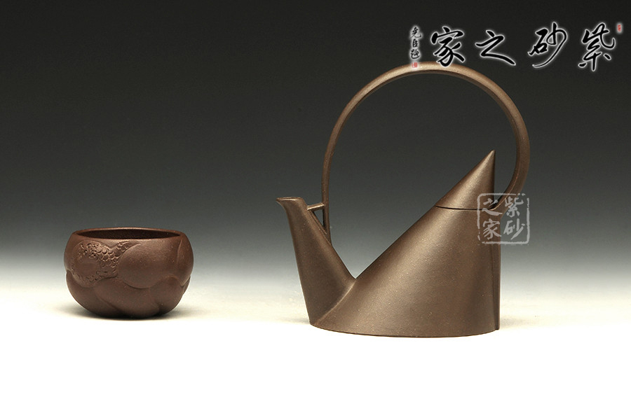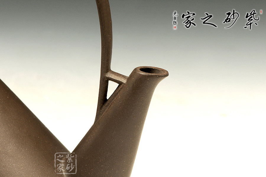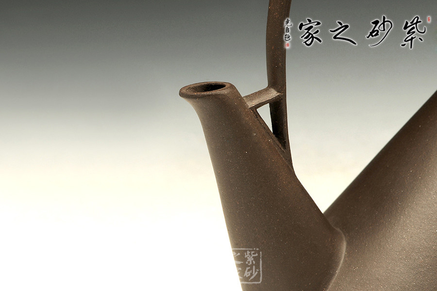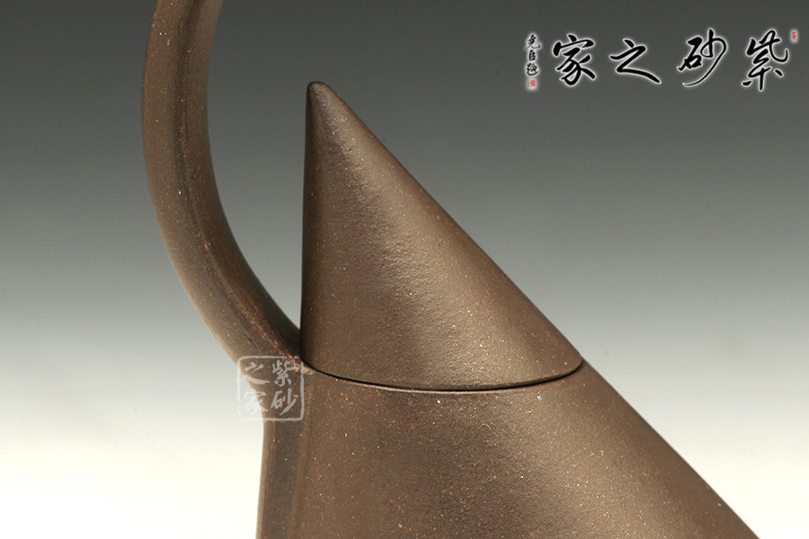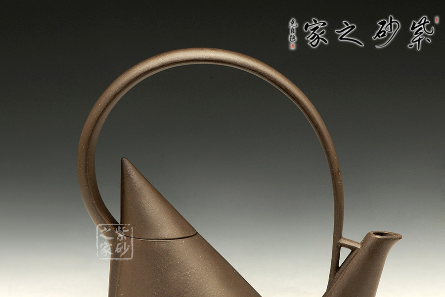 紫砂茗壺注重傳統(tǒng),更包容創(chuàng)新。陳國良老師所制的這款小天山壺提梁后仰如天山山峰,自持而優(yōu)美。不對等的三角造型,凌厲而出,線條筆挺。壺身壺蓋之處為以整體,和壺嘴而對立,一大一小似山峰,遙相對望,巍峨而出,不明古意,似有真意,把玩佳器!