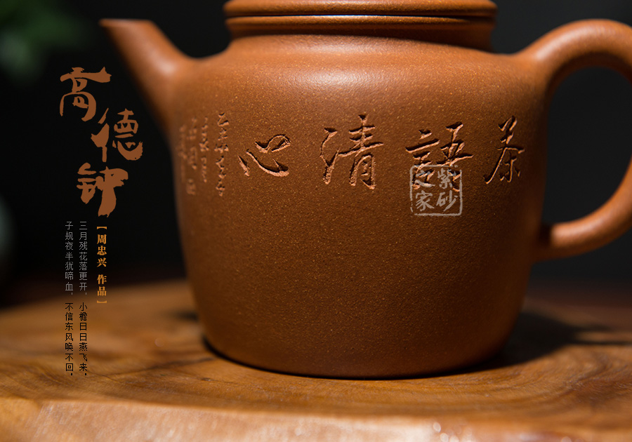 周忠興,國家級工藝美術(shù)師 江蘇省工藝美術(shù)學(xué)會會員 師從表姐、正高級工藝美術(shù)師范其華,1972年生于宜興市丁蜀鎮(zhèn),1990年于丁蜀高級職業(yè)學(xué)校陶瓷工藝專業(yè)畢業(yè),從事紫砂陶藝創(chuàng)作,后就讀于中國地質(zhì)大學(xué)藝術(shù)設(shè)計(jì)專業(yè),1993年進(jìn)修于中央工藝美術(shù)學(xué)院,專修陶瓷造型設(shè)計(jì),經(jīng)過二十多年的學(xué)習(xí)與實(shí)踐,對紫砂工藝的理論研究和制作工藝有獨(dú)到之處,創(chuàng)作作品構(gòu)思巧妙,有一定的思想和藝術(shù)性,所制作品態(tài)度認(rèn)真,出品嚴(yán)格,格調(diào)高雅,選料考究,尤其家藏原礦天青砂料極其稀有,深受紫砂壺藝行家的珍愛。