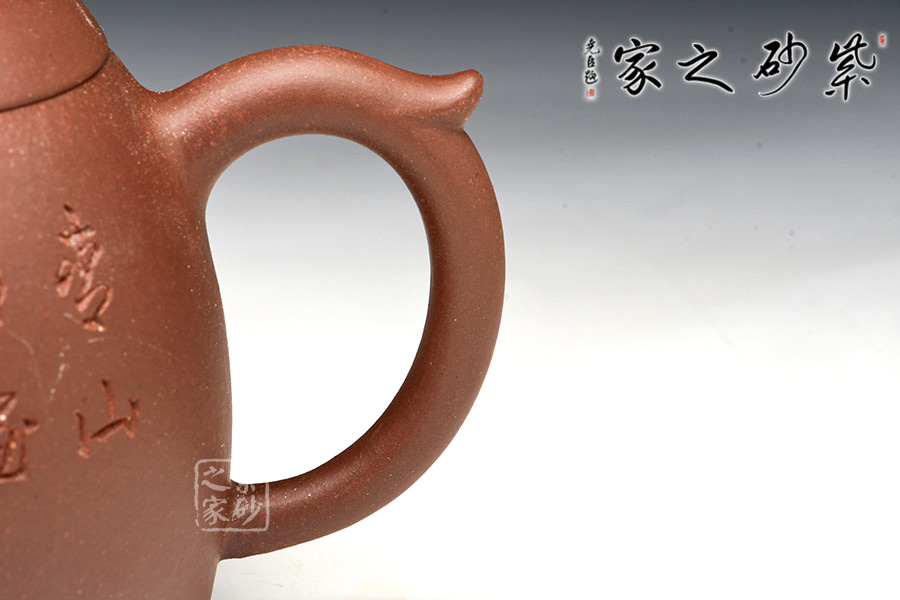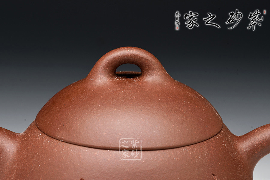 秦權(quán)壺為清代的林園所制。自誕生之日起,人們就為他簡(jiǎn)潔的造型、沉穩(wěn)的氣勢(shì)所吸引,無(wú)論壺藝人還是壺愛(ài)好者趨之若鶩,是為數(shù)不多的幾乎每個(gè)藝人都臨摹的器型之一。整款壺極其簡(jiǎn)練、古樸,橋鈕壓頂,與壺身形態(tài)相應(yīng)和;可以看出鈕狀略平,顯內(nèi)斂、沉穩(wěn),正切合秦權(quán)古韻。