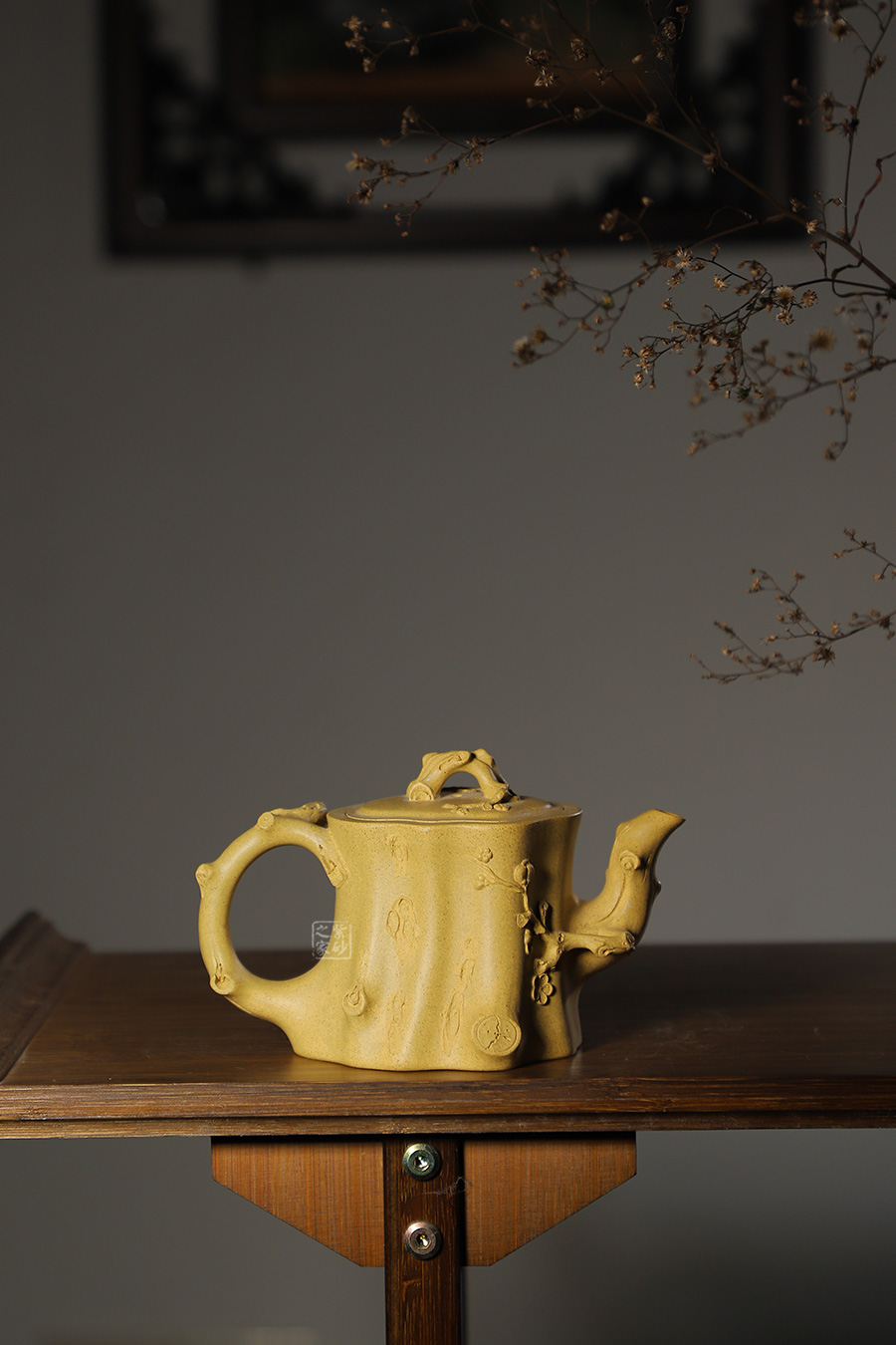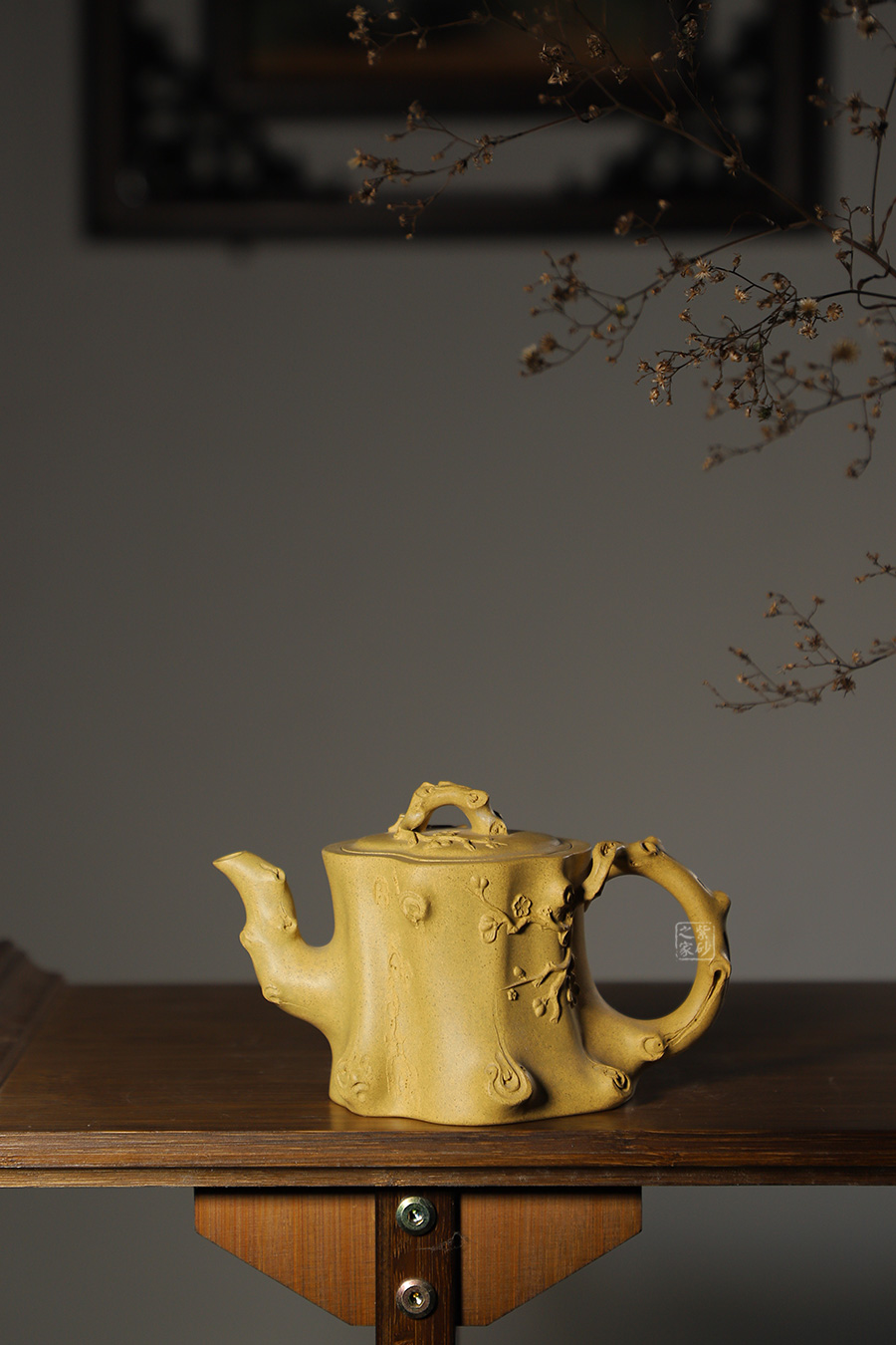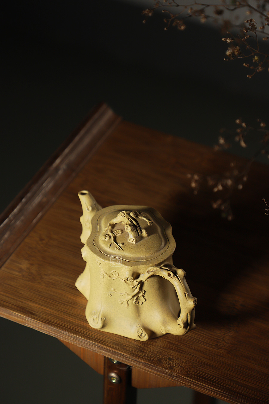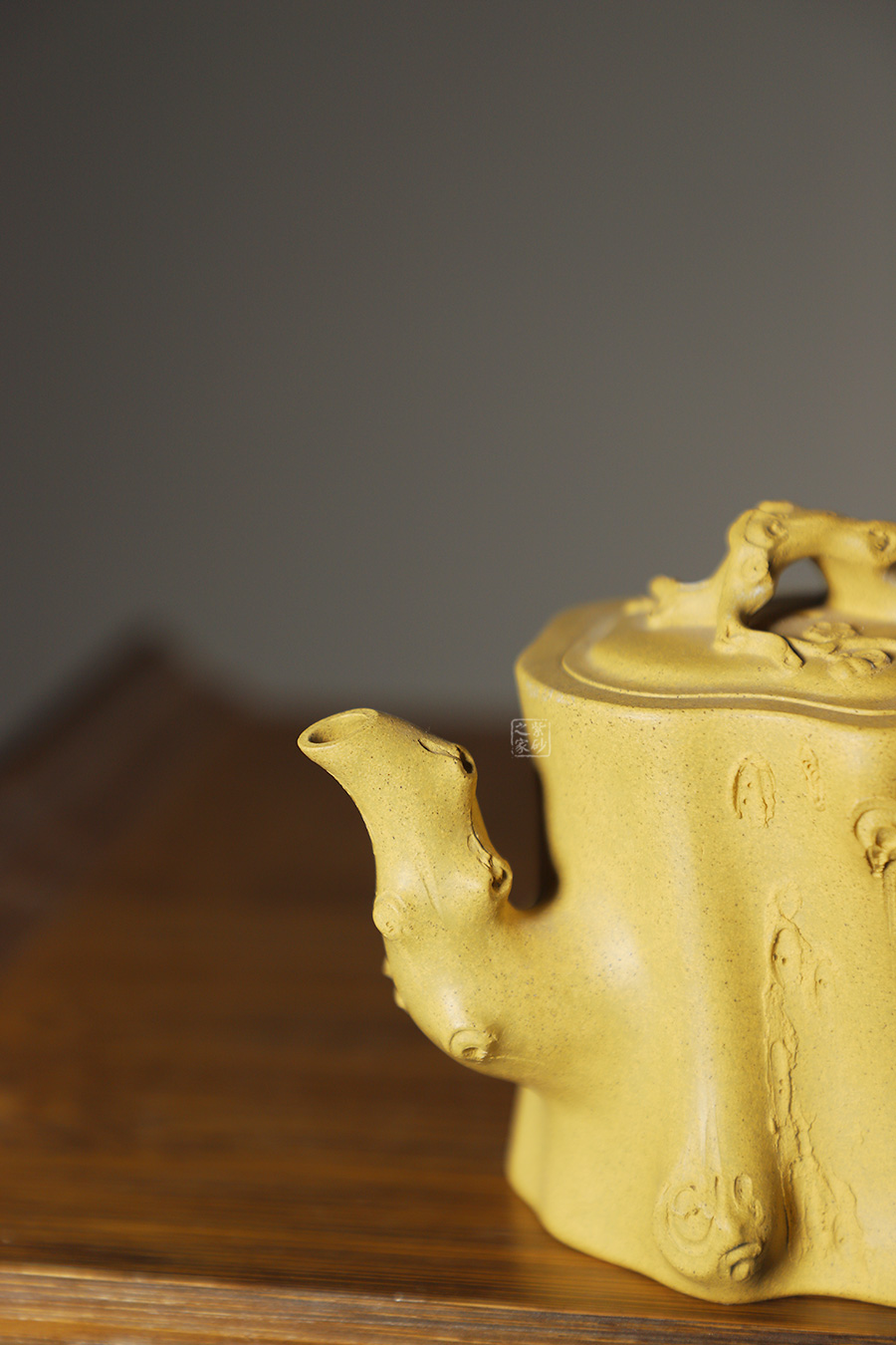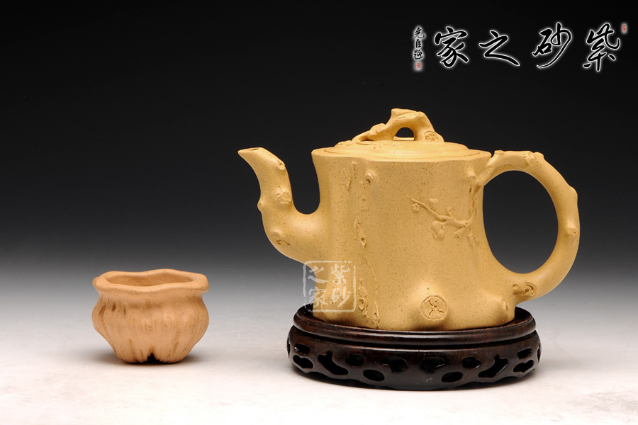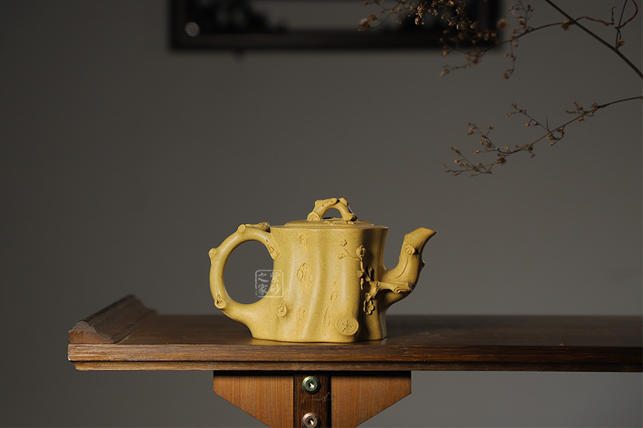此壺以梅花燦爛綻放表現(xiàn)報(bào)春的主題,從壺身造型到創(chuàng)作原意都洋溢著無(wú)比的朝氣,讓人感到了春天來(lái)到的勃勃生機(jī);壺身、流、把、蓋全部是用極富生態(tài)的梅樁、樹皮及纏枝組成,形態(tài)自然而富含力度;壺嘴壺把為梅樁衍生出的枝干,伸展自然,有如自然長(zhǎng)成,仿生性極強(qiáng),充滿了生命的活力;壺把和壺鈕處胥出梅花,疏影橫斜、暗香動(dòng)人;整體制作到位,此壺做工精細(xì),氣度非凡,實(shí)用性觀賞性都很好,是把玩收藏之佳作!