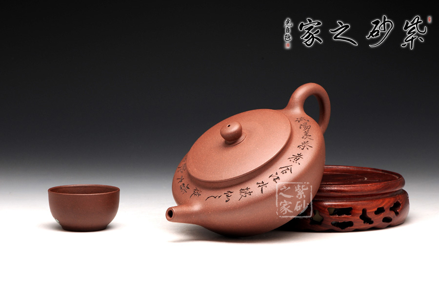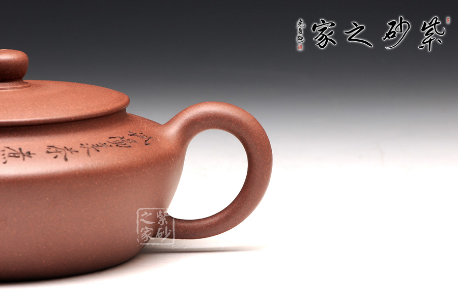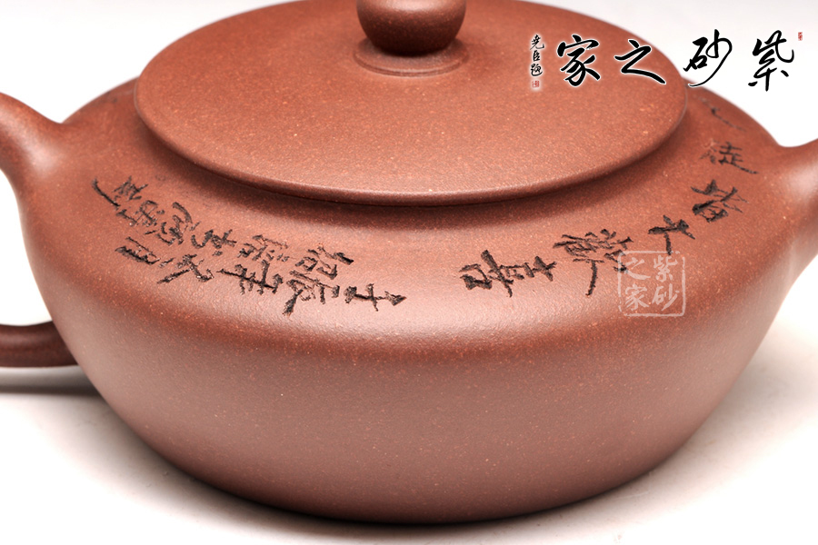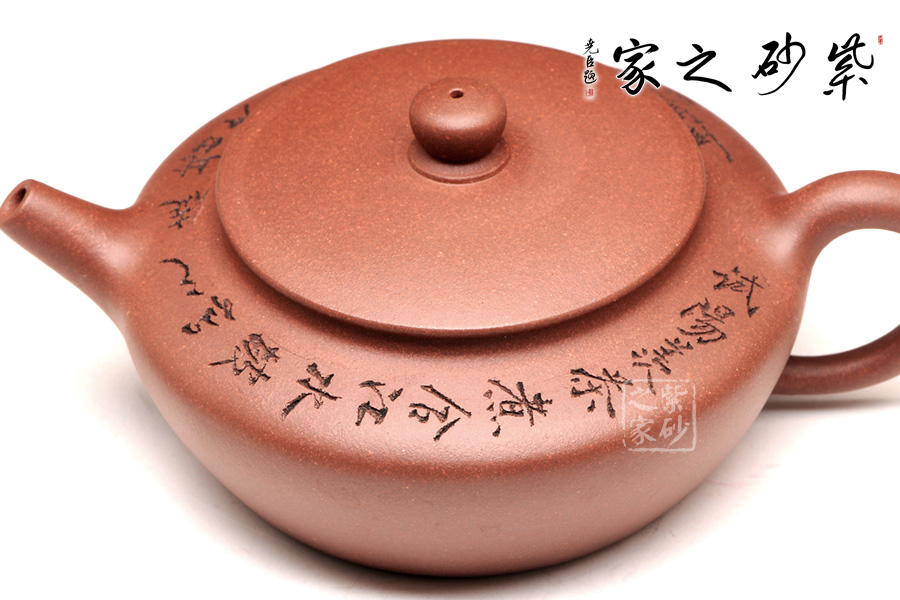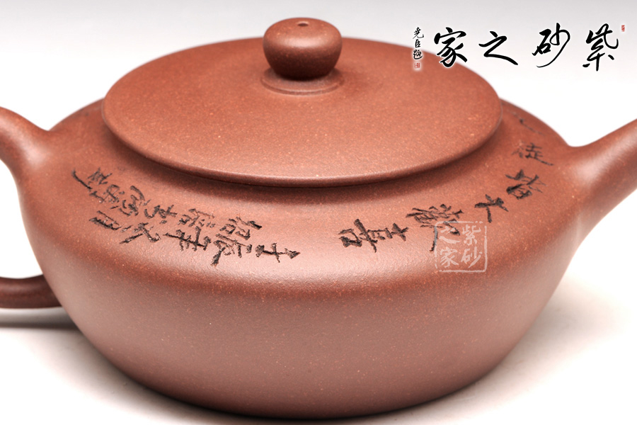 一把好壺永遠(yuǎn)都能夠經(jīng)得起時(shí)間的考驗(yàn),正如此把桑扁壺,以桑扁壺的端莊樸拙配上紫泥的沉著穩(wěn)重自是別有一番韻味,端莊中自有一種超脫的氣質(zhì),質(zhì)樸中不失一股風(fēng)流雅韻。平蓋壓口,子母線(xiàn)咬合緊密,在倒茶時(shí)不擔(dān)心水溢出,實(shí)用性?xún)r(jià)值高。直流嘴如珠炮噴薄而出,力度十足,出、斷水極其利索。耳形壺把與柔圓的形身相呼應(yīng)。作品重氣求精,形體端莊,線(xiàn)條流暢,很有其神韻。通身環(huán)繞刻繪的詩(shī)詞更顯意味!