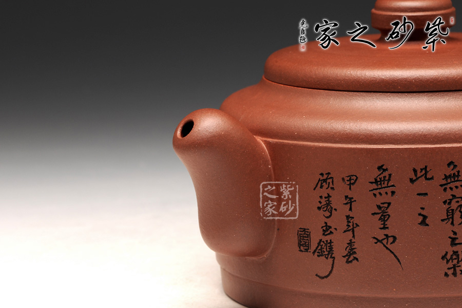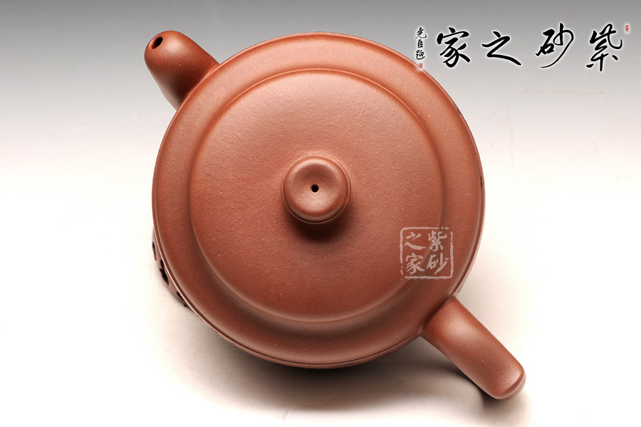 此壺為顧濤老師精工細(xì)作。厚重而穩(wěn)實(shí),淡泊出神,平蓋嚴(yán)密,天衣無(wú)縫,蓋面飽滿上凸,扁圓鈕碩大無(wú)比,好似玉盤(pán)。短頸直率,肩線溫和,壺身身筒簡(jiǎn)約,呈短柱形,壺底略微收斂。二彎嘴蜿蜒而出,小巧誘人,且流基寬,嘴口圓,出水暢。耳形端把,把體寬和,暗接精湛無(wú)痕,端握舒適。整個(gè)壺形線條流暢優(yōu)美,品茶欣賞之優(yōu)品。