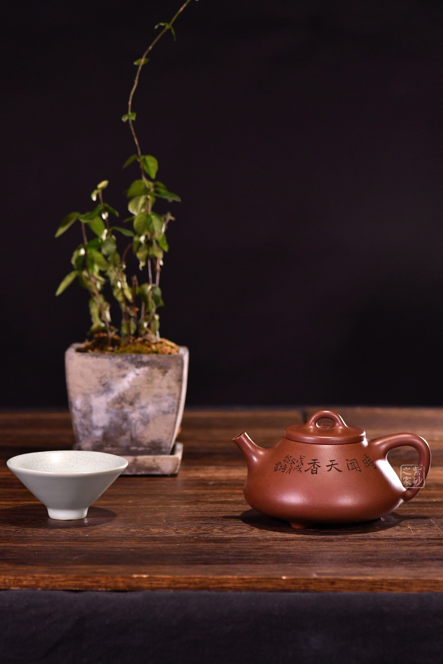經(jīng)典的紫砂款式看似簡單,其實(shí)是考驗(yàn)工藝師技藝的一把尺子,就像子冶石瓢,器形的流暢與和諧自然是第一道難關(guān),然而壺中透出的風(fēng)骨神韻才真正難以把握。老師的技藝卻是達(dá)到了這種境界,初欣賞子冶石瓢時感到壺體中透出一種“骨力”,簡潔利索、清奇脫俗,壺身內(nèi)外氤氳著一種剛健挺拔之氣,一種不同流俗、遺世獨(dú)立的風(fēng)骨。