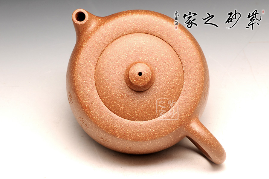 泥性:感甜嫩綿密,質(zhì)堅(jiān)而溫潤,呈近田黃色調(diào),為江蘇宜興趙莊山系朱泥礦~黃石黃之共生礦,經(jīng)挑揀練製而成,因含鐵量只達(dá)6%左右,致陶之后呈“金田黃色”。