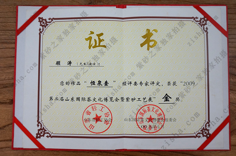 《恒泉壺》 在2009年第二屆山東國際文化博覽會暨紫砂工藝展榮獲金獎