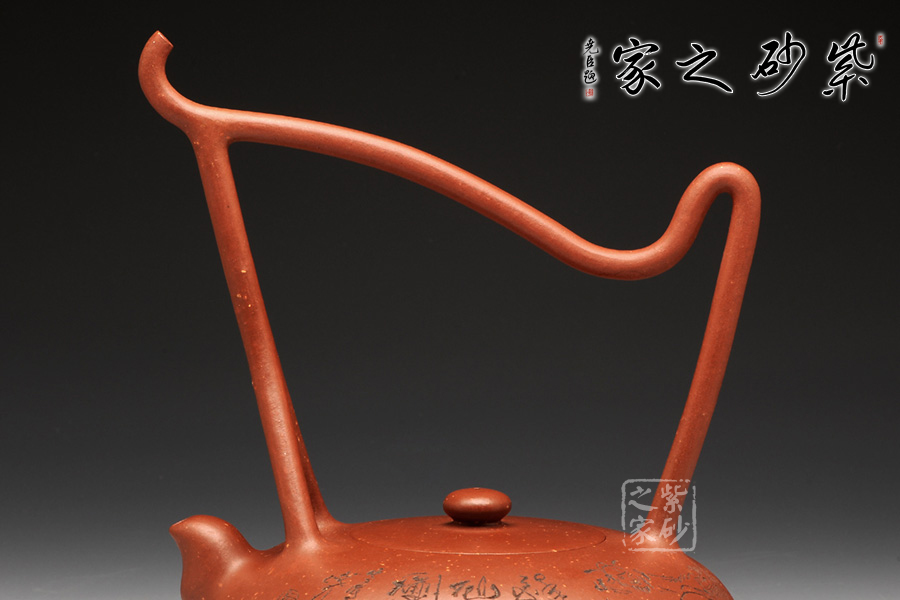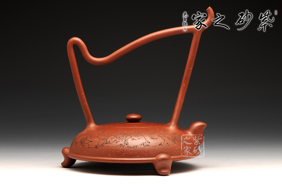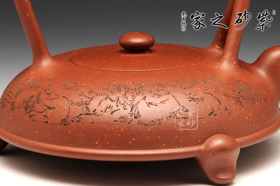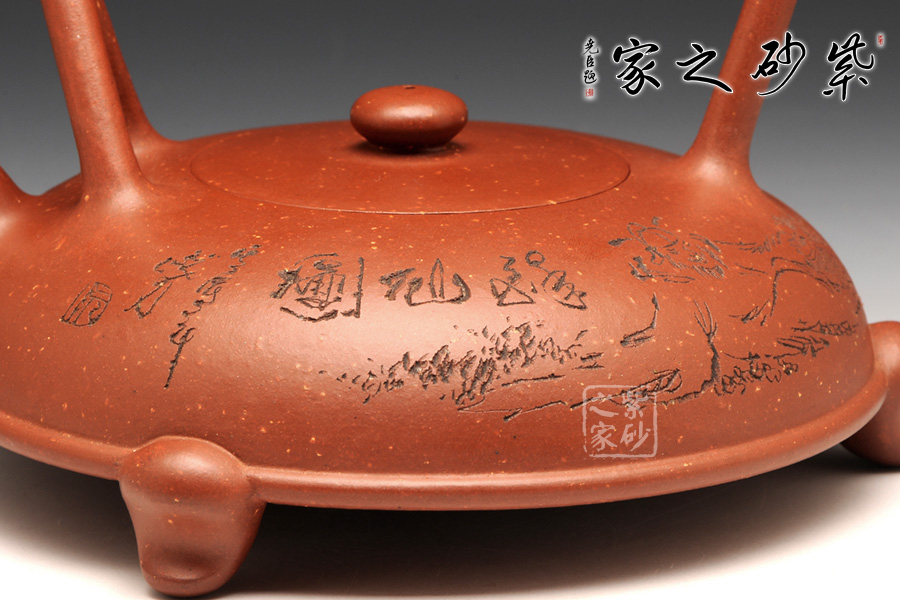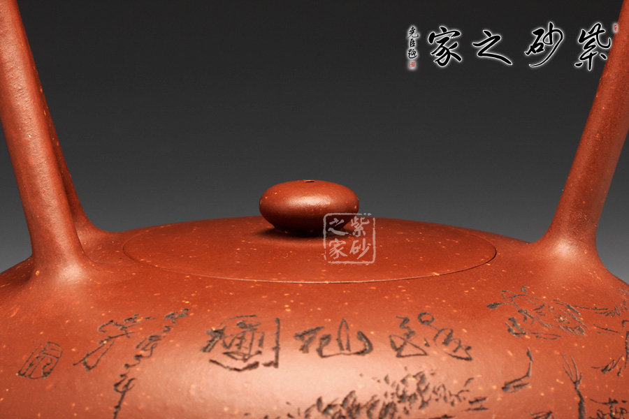 提得一提,整壺選用段砂底槽青,已然絕跡的泥料,僅制兩把,而另一把目前在紫砂廠陳列室之中。同時,壺身裝飾是甘肅省大師阮力刻繪,筆刀蒼勁有力,品茗賞玩,實為值得收藏也!