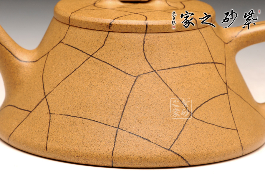 泥性:感甜嫩綿密,質(zhì)堅(jiān)而溫潤(rùn),呈近田黃色調(diào),為江蘇宜興趙莊山系朱泥礦~黃石黃之共生礦,經(jīng)挑揀練製而成,因含鐵量只達(dá)6%左右,致陶之后呈“金田黃色”。