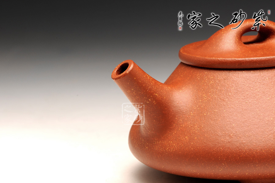 特點:原礦因含緞泥、紅泥、紫泥等諸多共生礦,陶之后,于深沉之“橙紅色”底上,滿佈五彩斑斕的粗細(xì)、深淺之紅、黃星斑點。