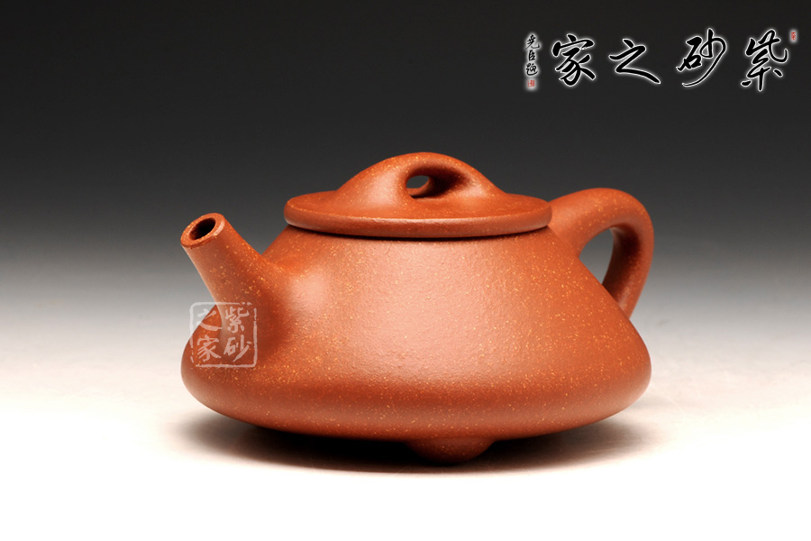 精選降坡泥泥料制成的此石瓢壺,泥質(zhì)醇厚,古雅深沉。此壺下大上小呈三角形的石瓢形,周身皆以圓弧線條構(gòu)成,嘴、把、的處處銜接自然流暢,線條利落明確,起承轉(zhuǎn)合交待清楚。下以三圓足支起全身,使壺顯得挺括有神,沉靜而深意雋永。