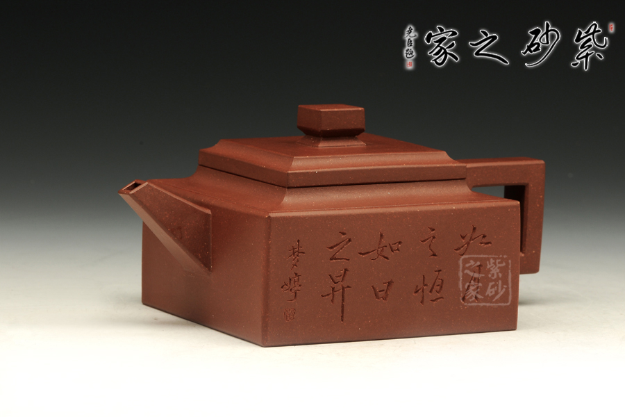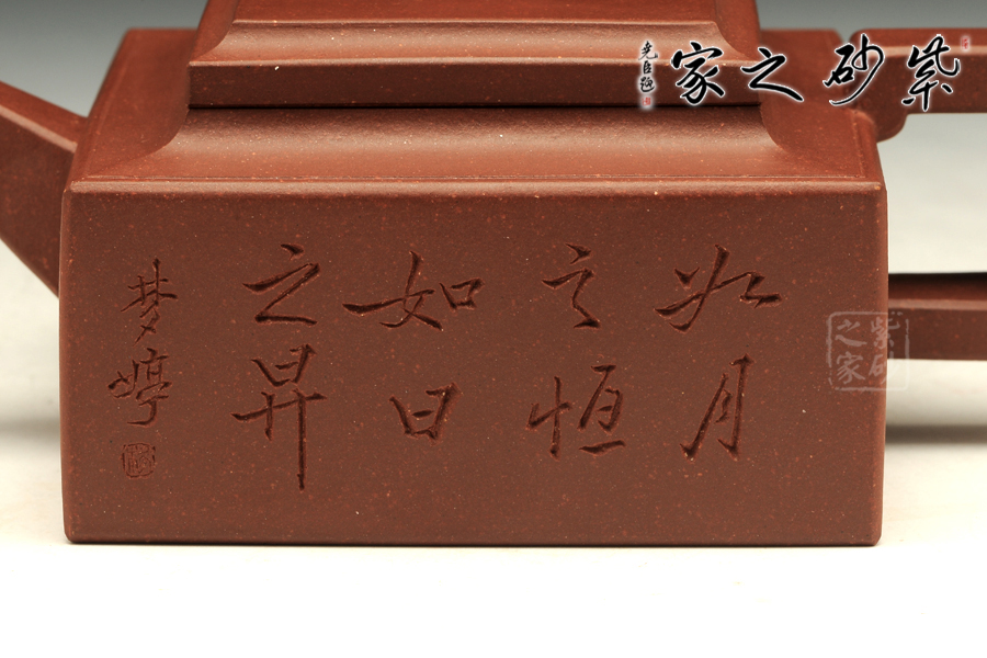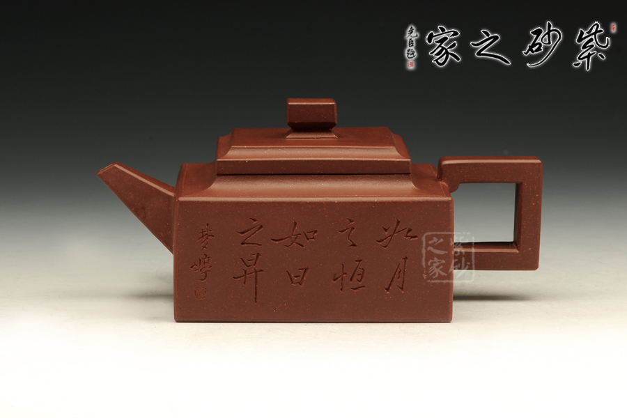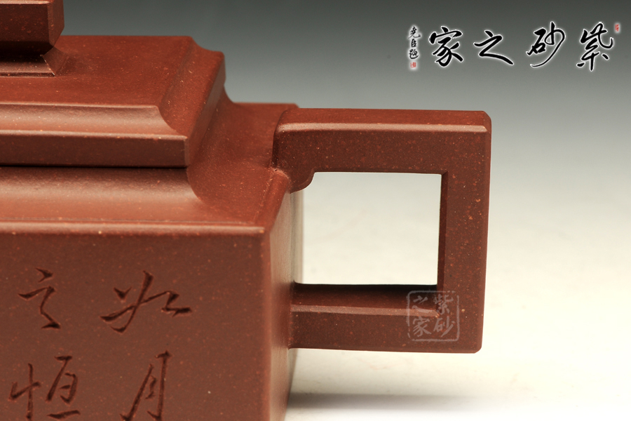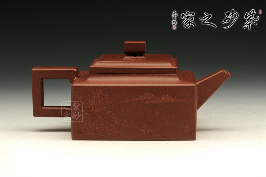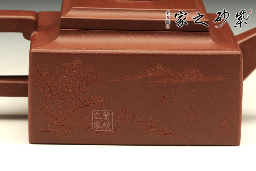 此壺是經(jīng)典的紫砂方器。壺身呈現(xiàn)長方形,規(guī)整大氣。精選原礦底槽清泥料制成,泥質(zhì)醇厚,色澤古穆,觸手生溫。方的元素在此壺中運(yùn)用得大氣磅礴,層次感非常豐富。總體來說,此壺的氣韻就非常高雅??汤L裝飾工藝又非常增色,兩岸山水怡然自得,孤帆小船清雅淡然,整體線條簡練自然,別樣動人。