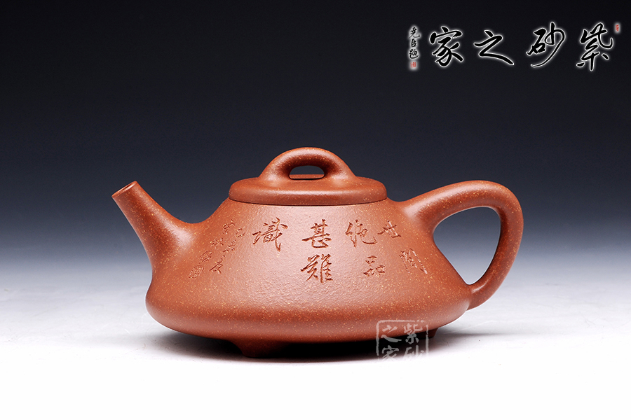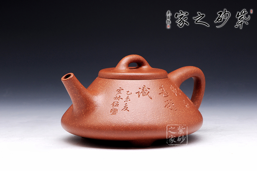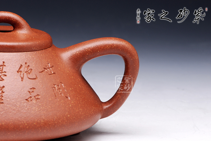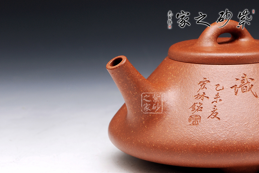 此款作品為全手工制作。整體造型簡練,古樸大方,端莊穩(wěn)重,剛中有勁,敦實(shí)調(diào)和。此石瓢壺繼承了傳統(tǒng)的精粹,整個壺身呈“金字塔”形,豐潤飽滿,由于重心下垂使用很穩(wěn)當(dāng),更具有極大的觀賞性。直筒形壺嘴,使出水更加有力量順暢,壺鈕采用常見的拱橋造型,使整款壺在簡單中多了一份活力,壺蓋與壺身嚴(yán)絲密縫使此壺具有極高的實(shí)用性。