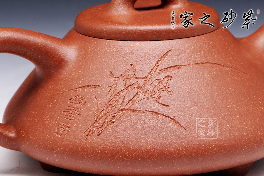 特點(diǎn):原礦因含緞泥、紅泥、紫泥等諸多共生礦,陶之后,于深沉之“橙紅色”底上,滿佈五彩斑斕的粗細(xì)、深淺之紅、黃星斑點(diǎn)。