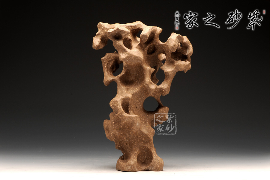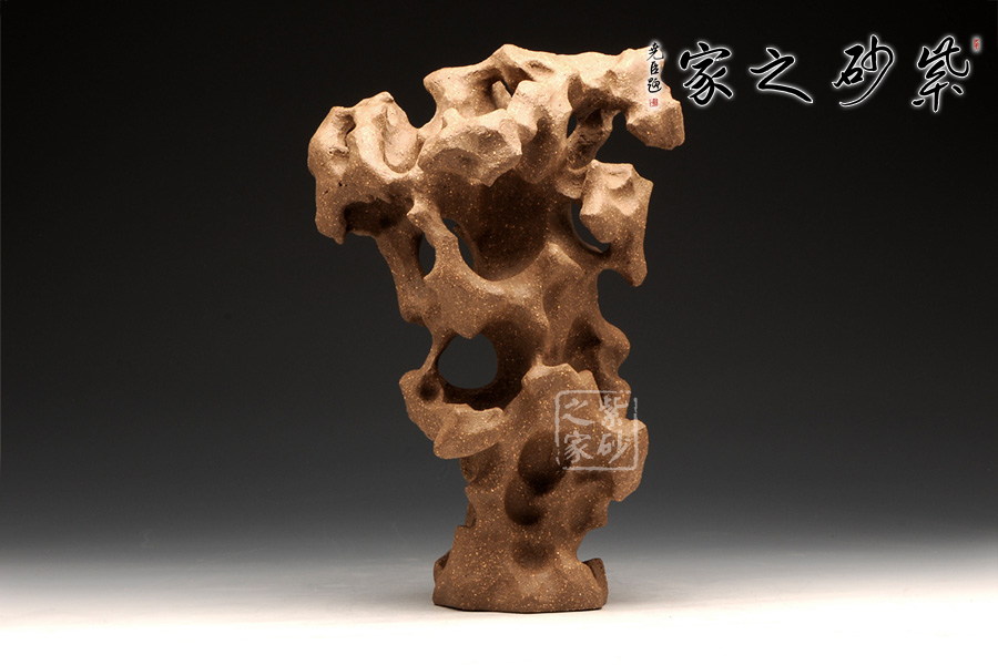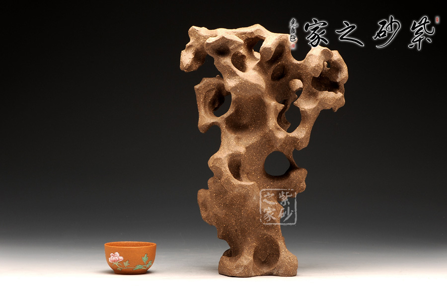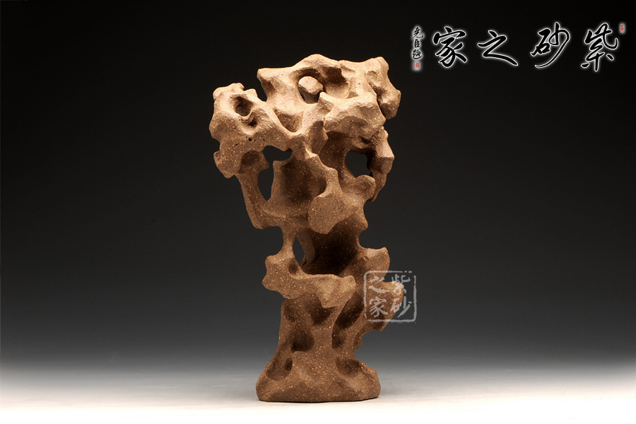 此紫砂段泥制作的假山擺件,造型嶙峋,挺立堅韌,一種古樸的自然之韻,好似風(fēng)化的巖石,怪石延展,別有一番趣味。如同,清孫枝蔚《園中作》詩作:“小樹初栽將伴老,假山久玩欲同真。”適合擺放與空間一處,可做裝飾,可欣賞,也可點綴分隔空間之用。